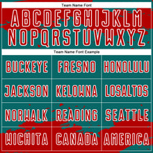 • Load image into Gallery viewer, Custom Teal Red-White Abstract Fragment Art Sublimation Soccer Uniform Jersey