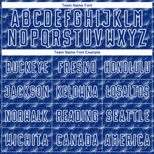 • Load image into Gallery viewer, Custom Royal White Geometric Shape Sublimation Soccer Uniform Jersey