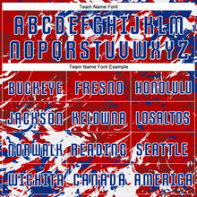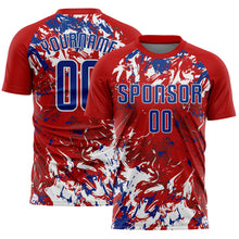 • Load image into Gallery viewer, Custom Red Royal-White Fluid Art Splash Sublimation Soccer Uniform Jersey