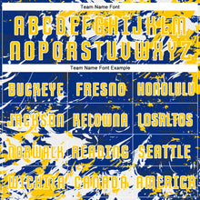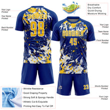 • Load image into Gallery viewer, Custom Royal Yellow-White Fluid Art Splash Sublimation Soccer Uniform Jersey