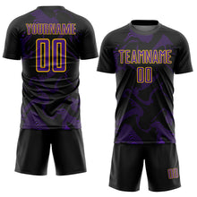 • Load image into Gallery viewer, Custom Black Purple-Yellow Curve Lines Sports Sublimation Soccer Uniform Jersey