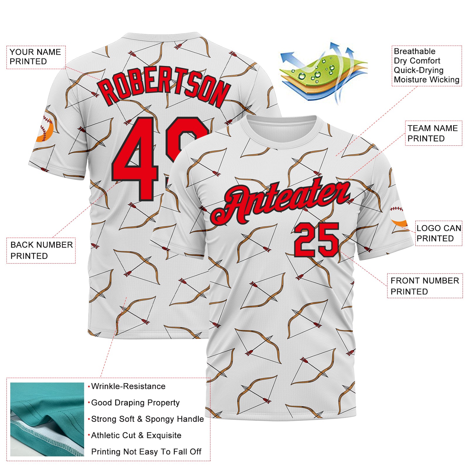 Custom White Fire Red-Black 3D Pattern Design Arrow Archery Bow Target Performance T-Shirt