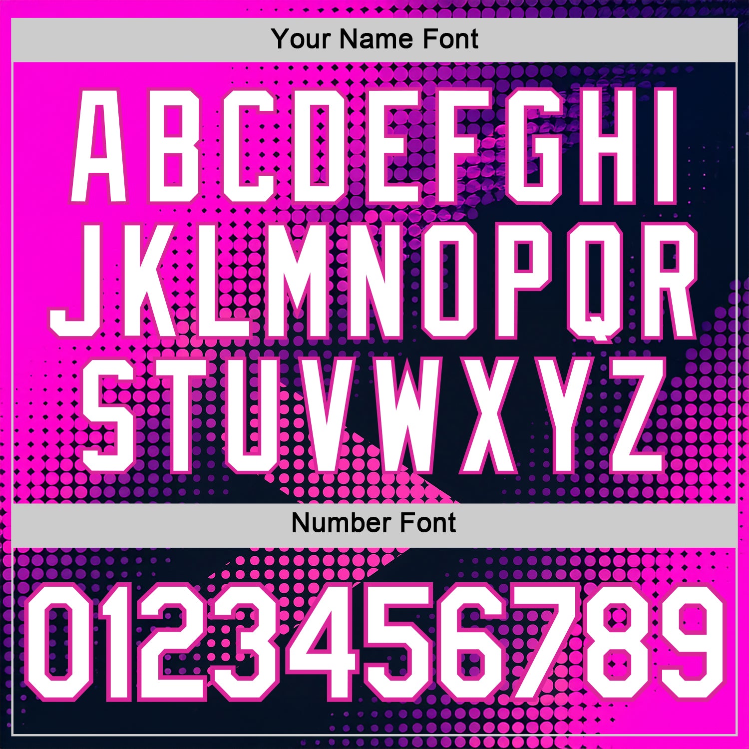 Custom Navy White-Deep Pink 3D Pattern Design Gradient Neon Sport Wear Performance T-Shirt
