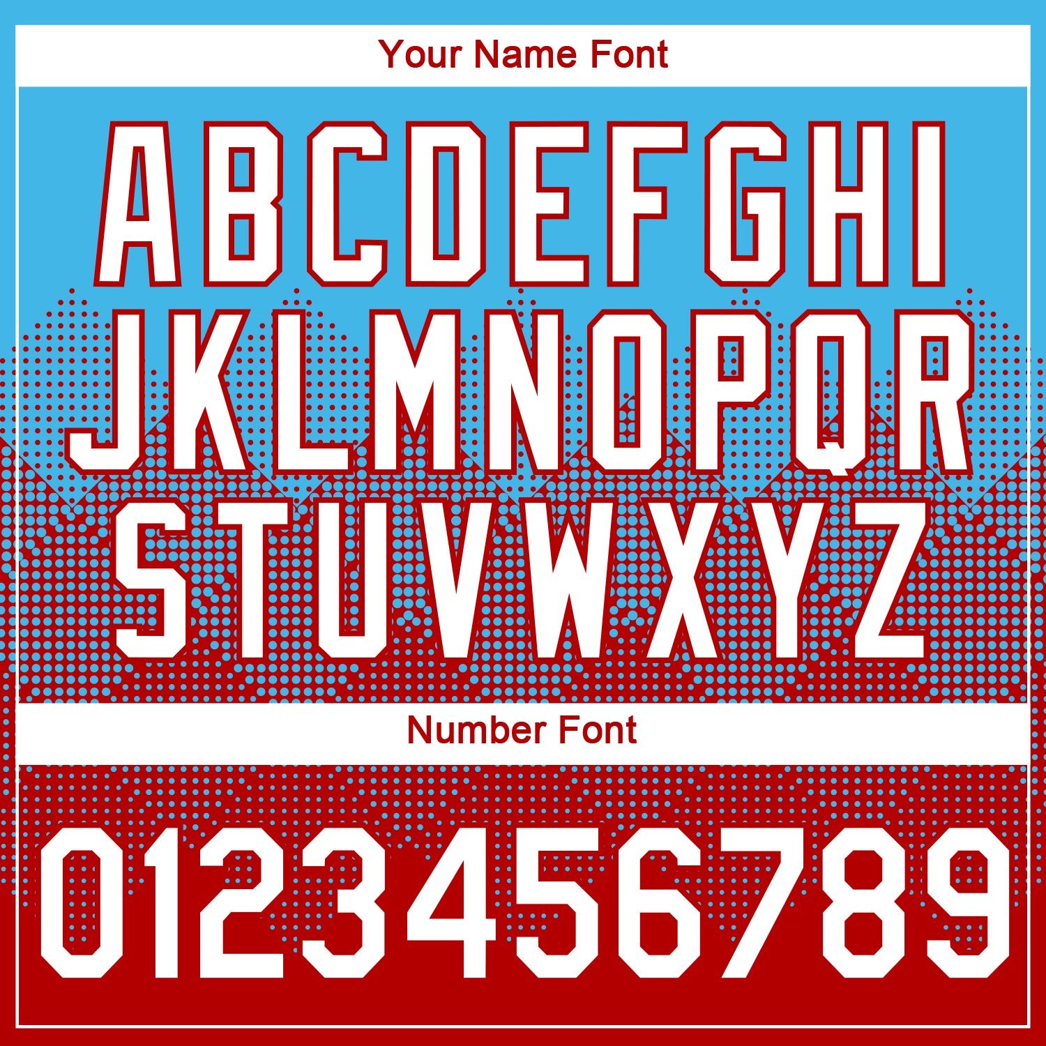 Custom Sky Blue White-Red 3D Pattern Design Gradient Square Shapes Performance T-Shirt