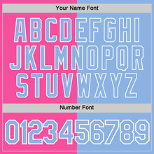 • Load image into Gallery viewer, Custom Pink Light Blue-White Split Fashion Performance T-Shirt