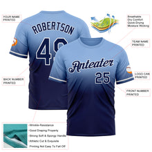 • Load image into Gallery viewer, Custom Light Blue Navy-White Fade Fashion Performance T-Shirt