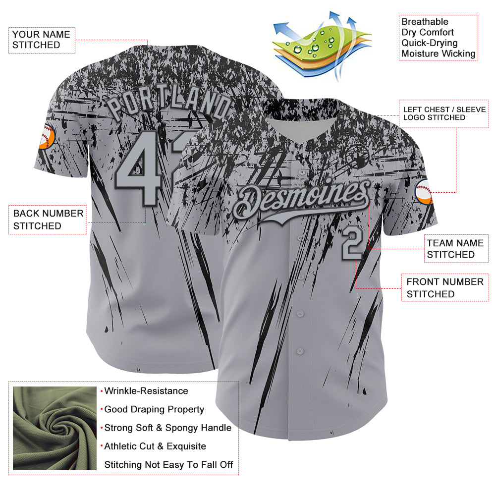 Custom Gray Black Distressed Scratch Brush Stroke Authentic Baseball Jersey