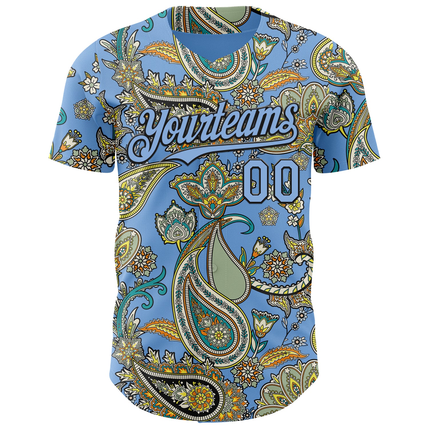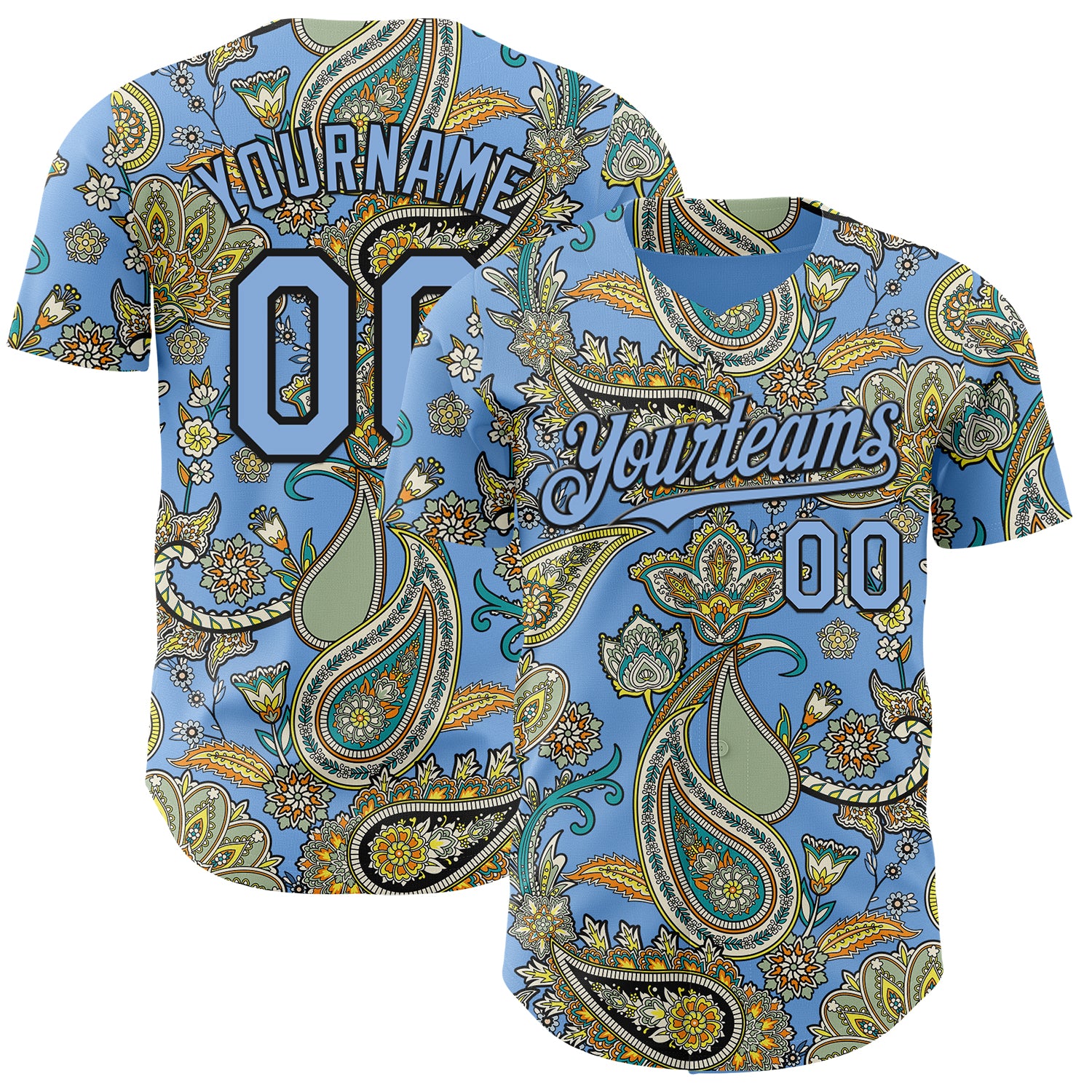 Custom Light Blue Black 3D Pattern Design Rave Party Ethnic Paisley Bandana Authentic Baseball Jersey