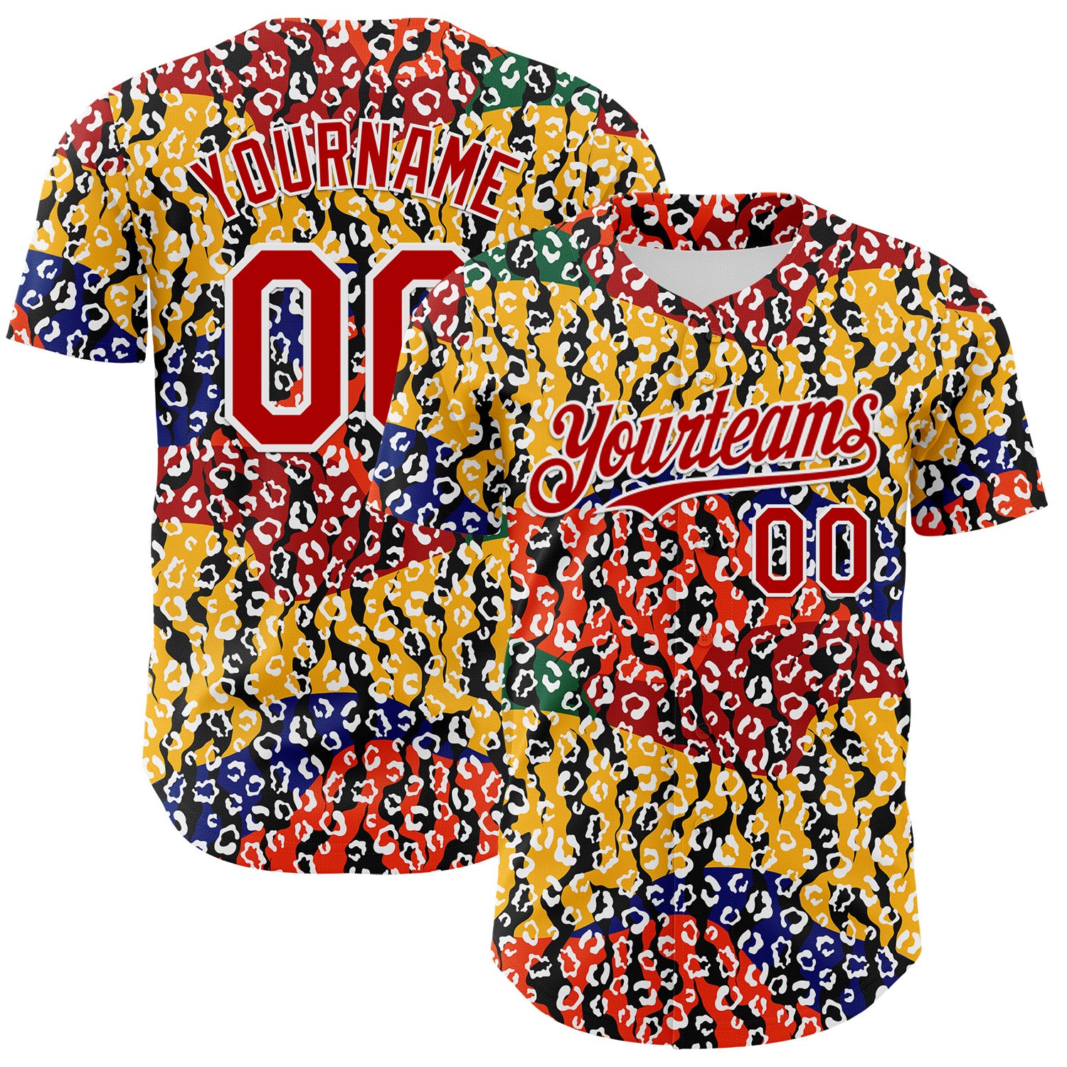 Custom Yellow Red Black Green-White 3D Pattern Design Black History Month Animal Print Authentic Baseball Jersey