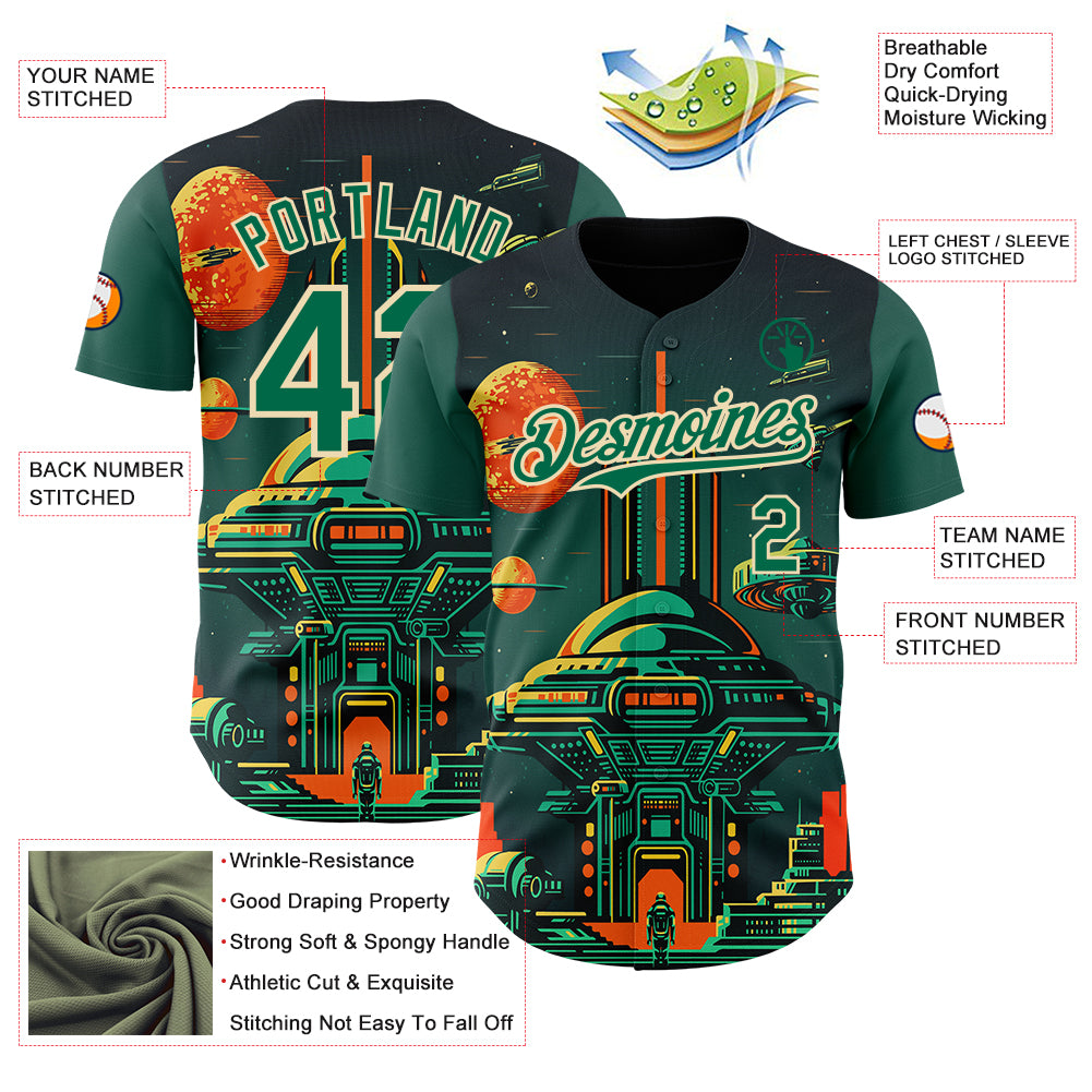 Custom Black Kelly Green-Cream 3D Pattern Design Alien Spaceship Fleet UFO Galaxy Authentic Baseball Jersey