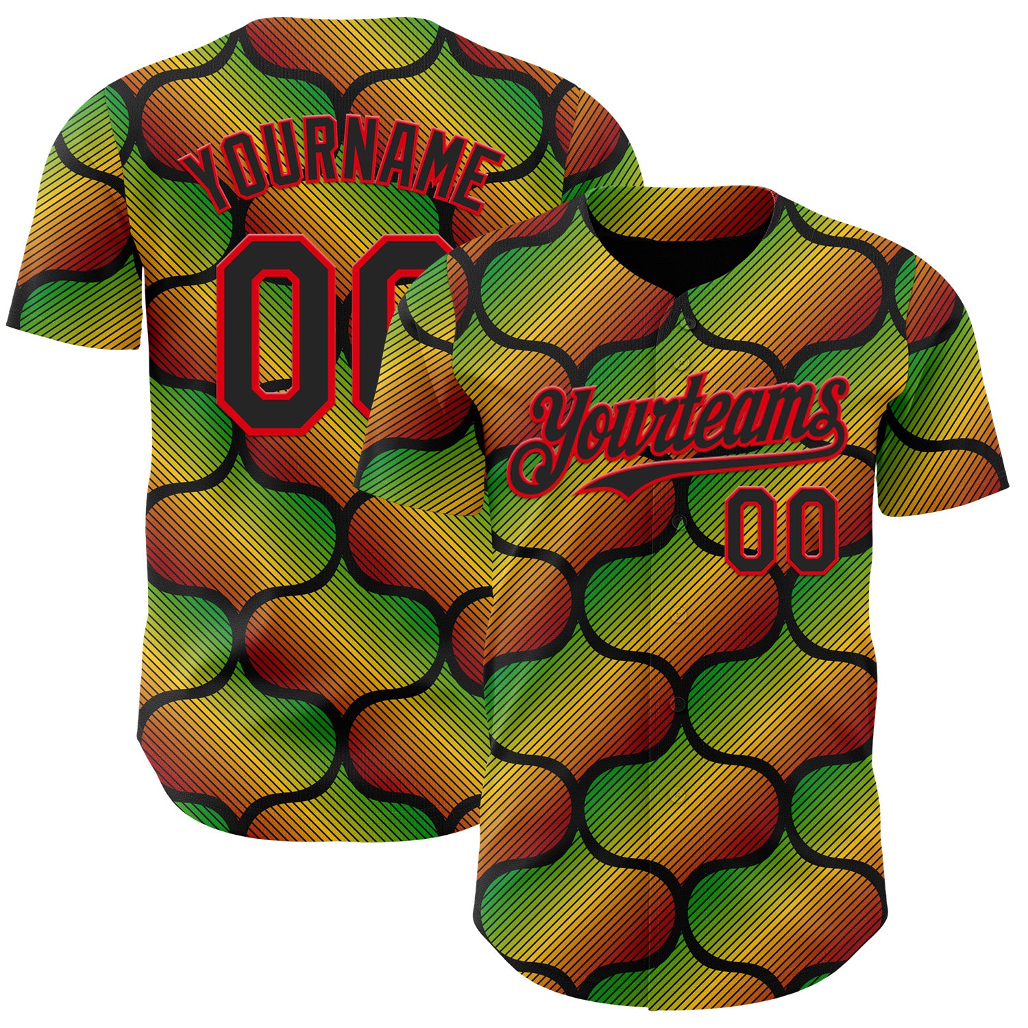 Custom Black Fire Red Green-Yellow 3D Pattern Design Black History Month Gradient African Ethnicity Style Authentic Baseball Jersey