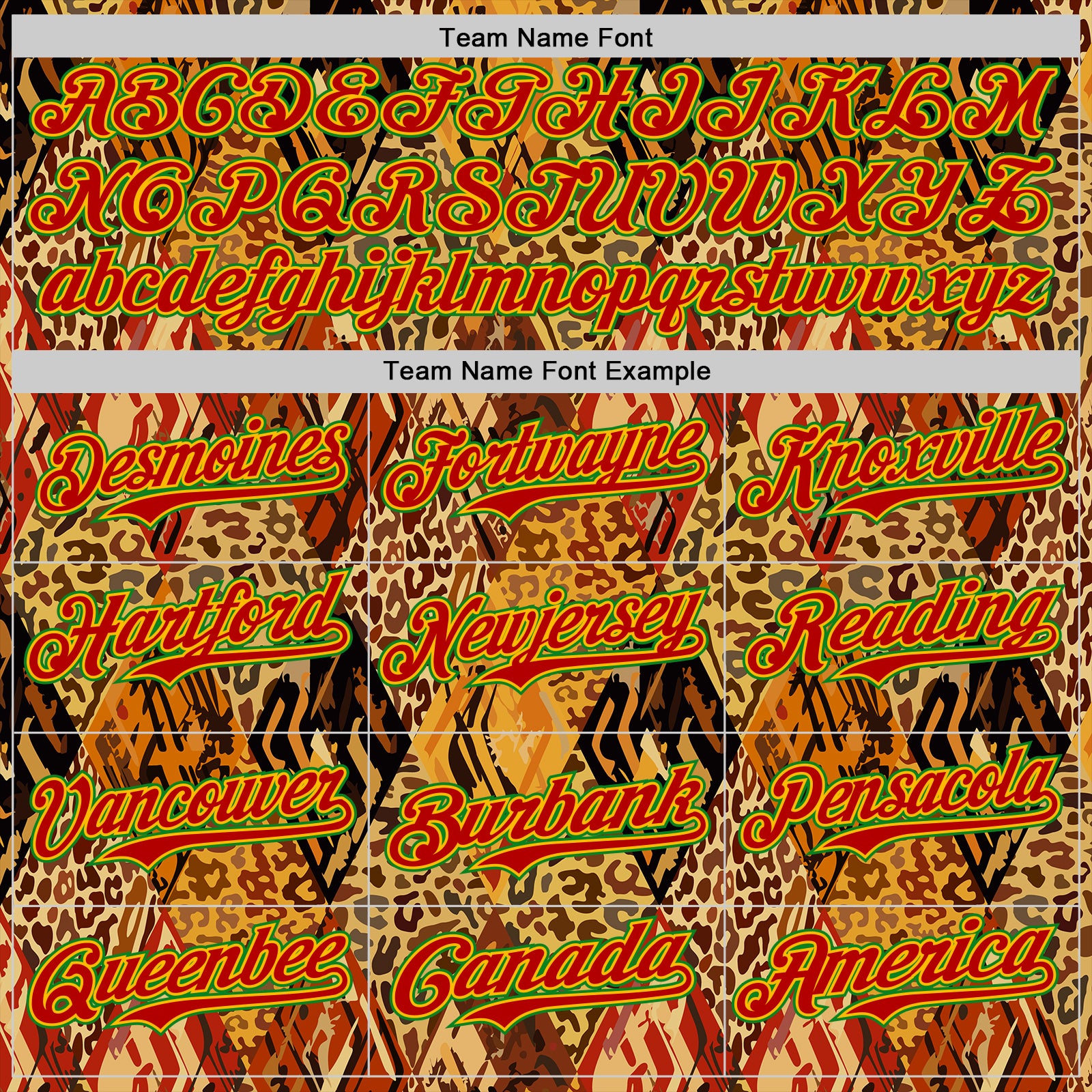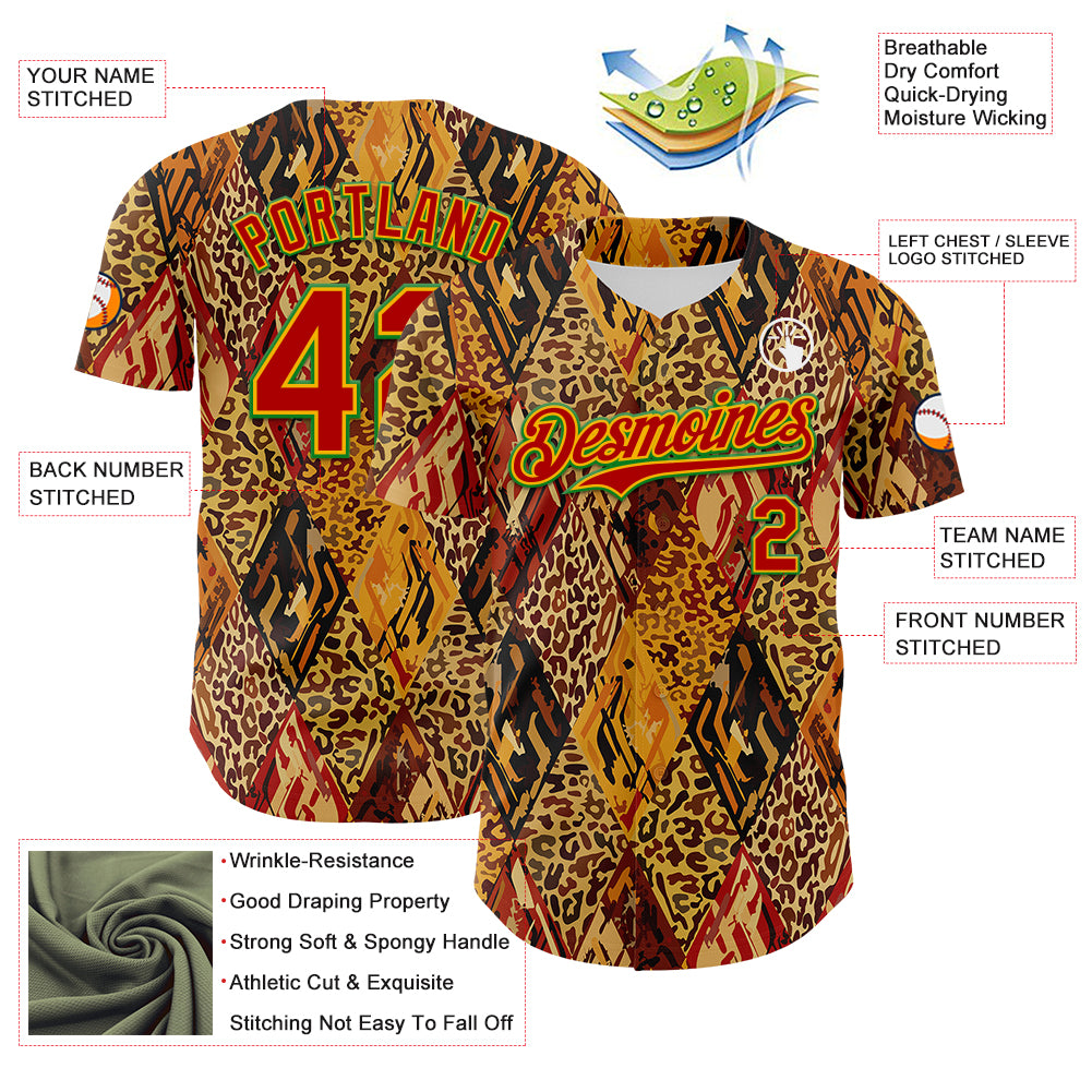 Custom Brown Red Gold-Grass Green 3D Pattern Design Black History Month Animal Print Authentic Baseball Jersey