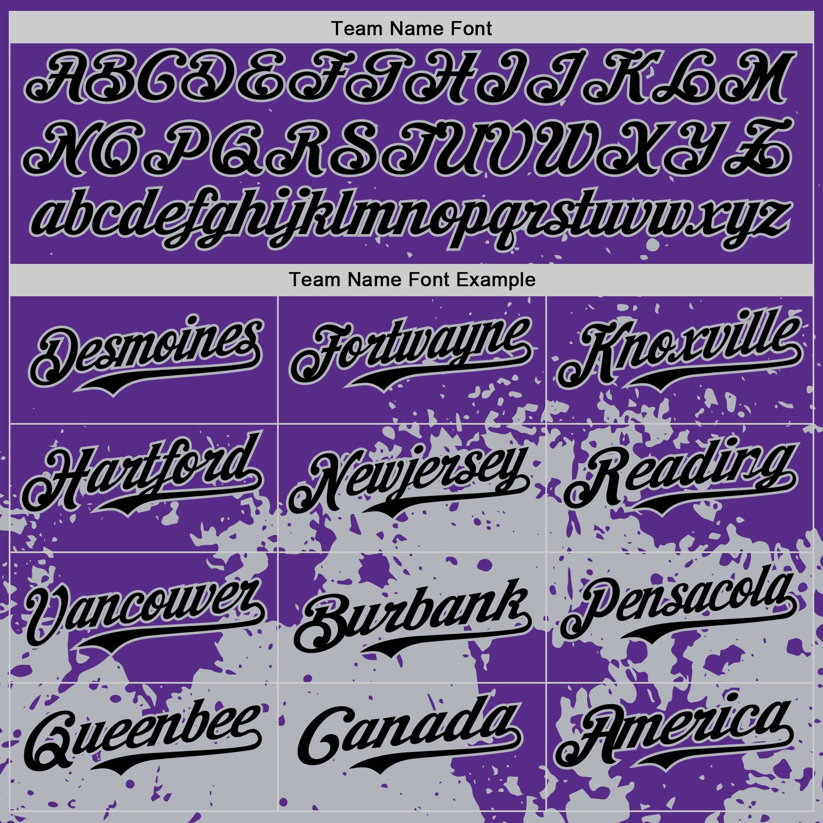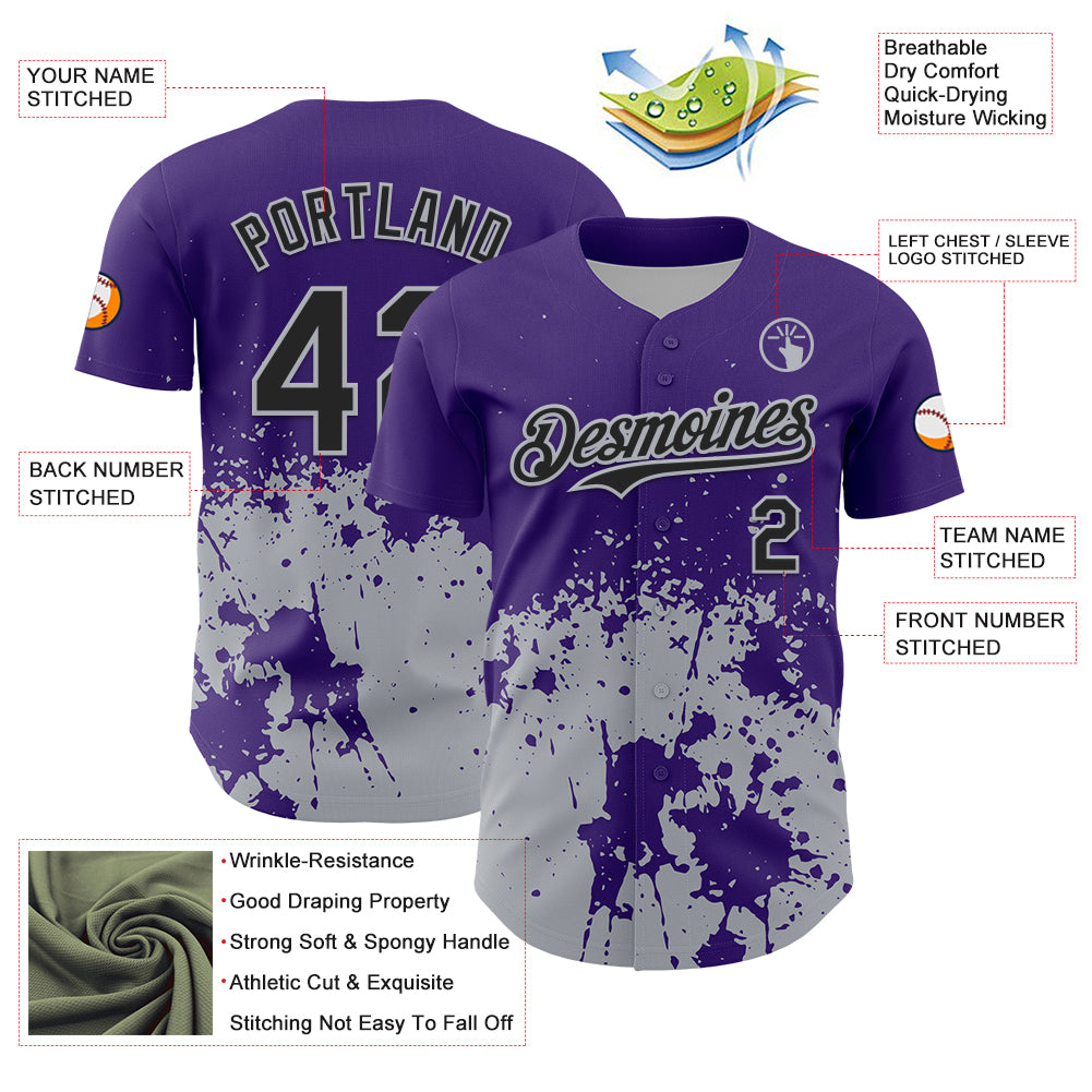 Custom Purple Black-Gray Abstract Splatter Grunge Authentic Baseball Jersey