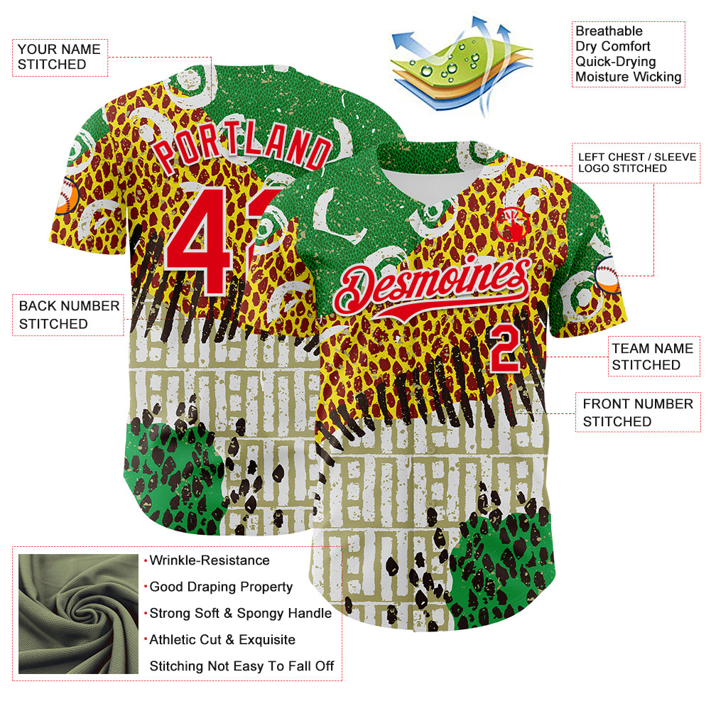 Custom White Fire Red Green Yellow-Black 3D Pattern Design Black History Month Animal Print Authentic Baseball Jersey
