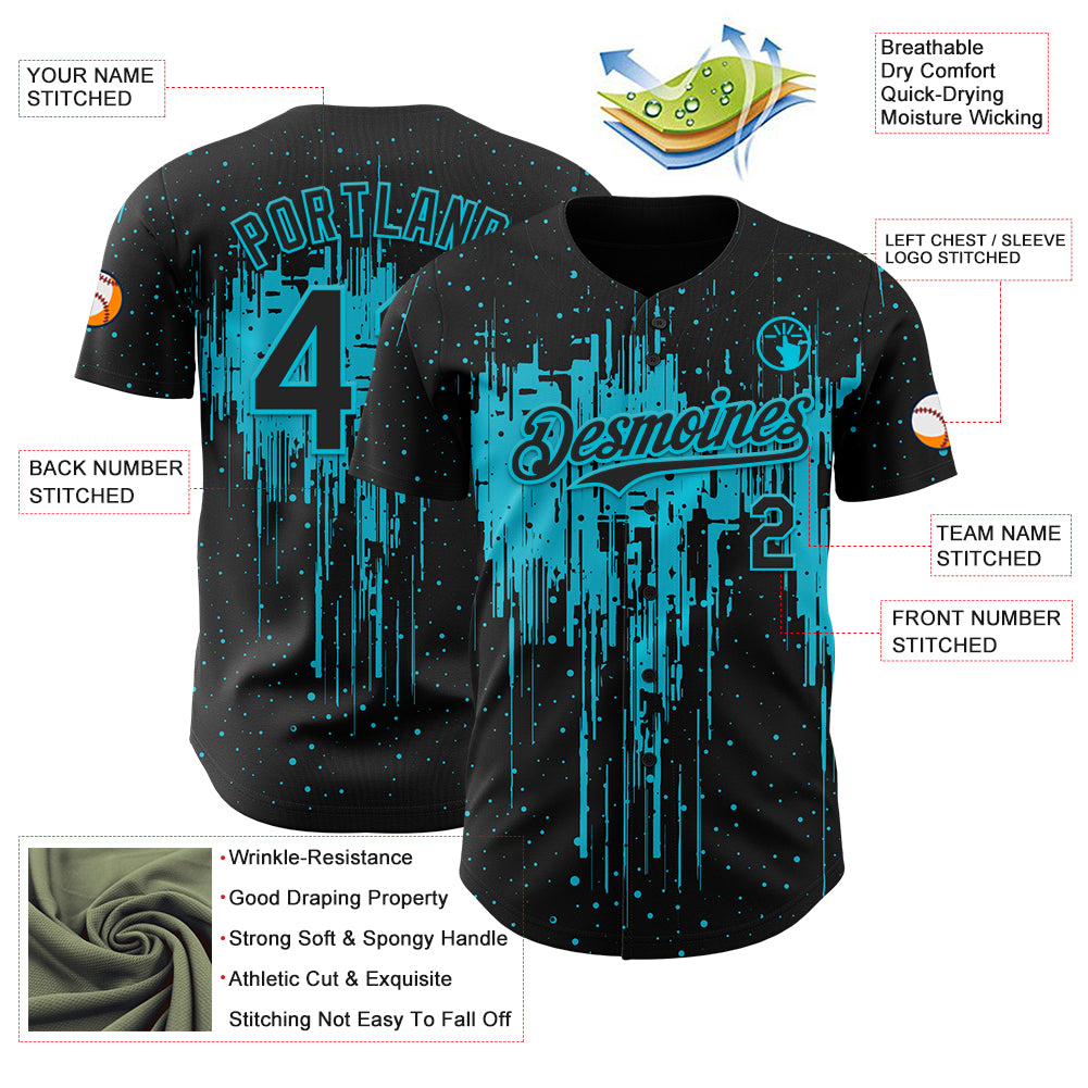 Custom Black Lakes Blue 3D Pattern Design Dripping Splatter Paint Authentic Baseball Jersey