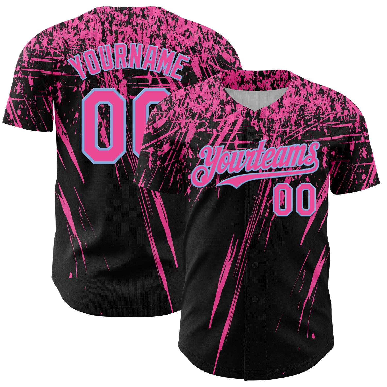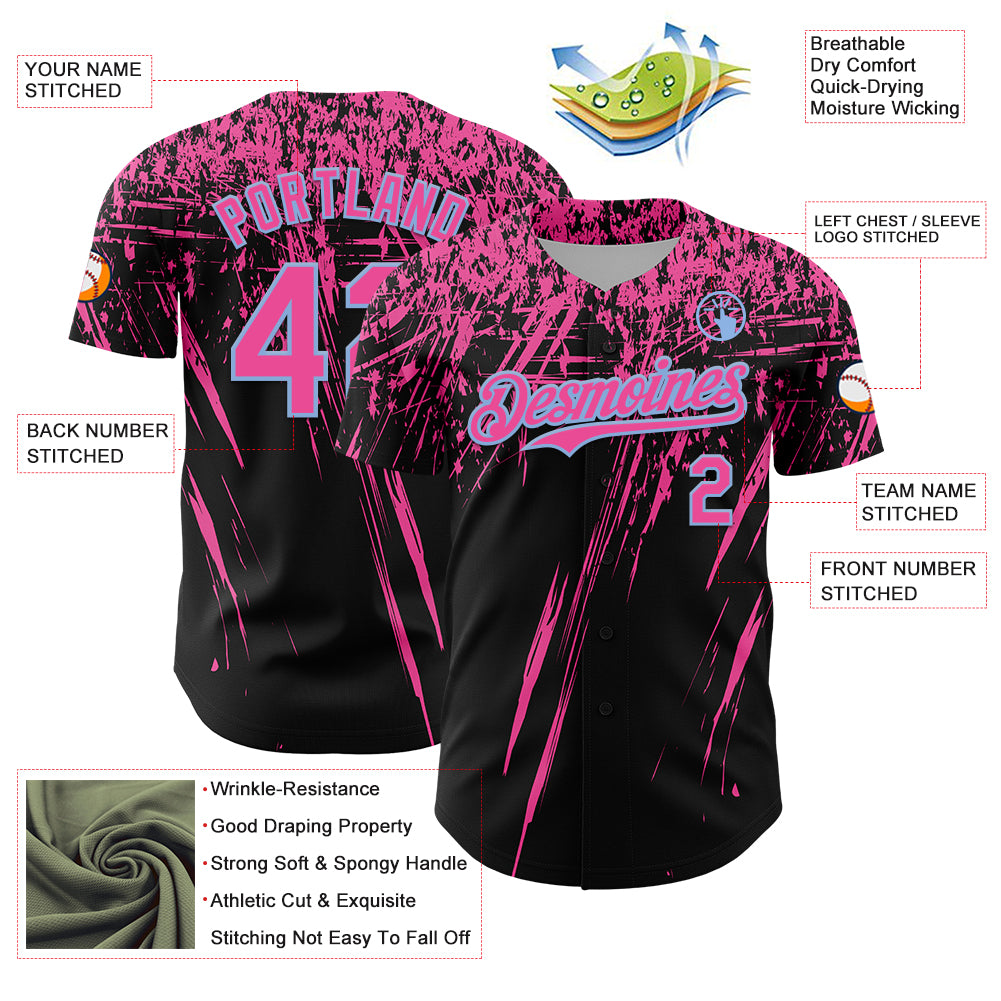 Custom Black Pink-Light Blue Distressed Scratch Brush Stroke Authentic Baseball Jersey