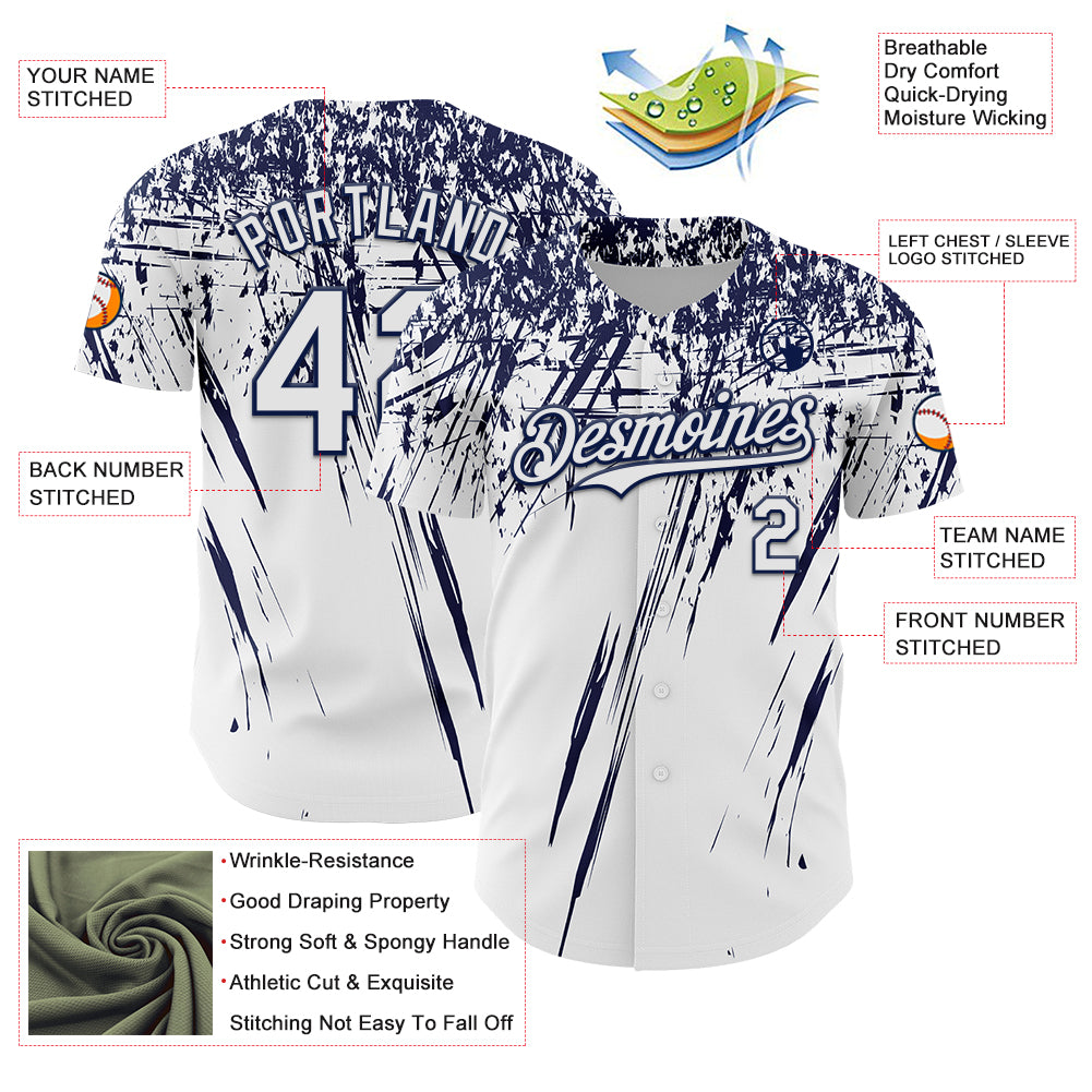 Custom White Navy Distressed Scratch Brush Stroke Authentic Baseball Jersey