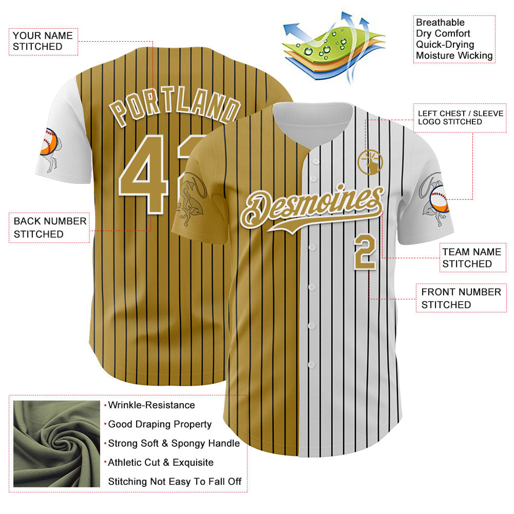 Custom White Black Pinstripe Old Gold Texas City Edition Authentic Baseball Jersey