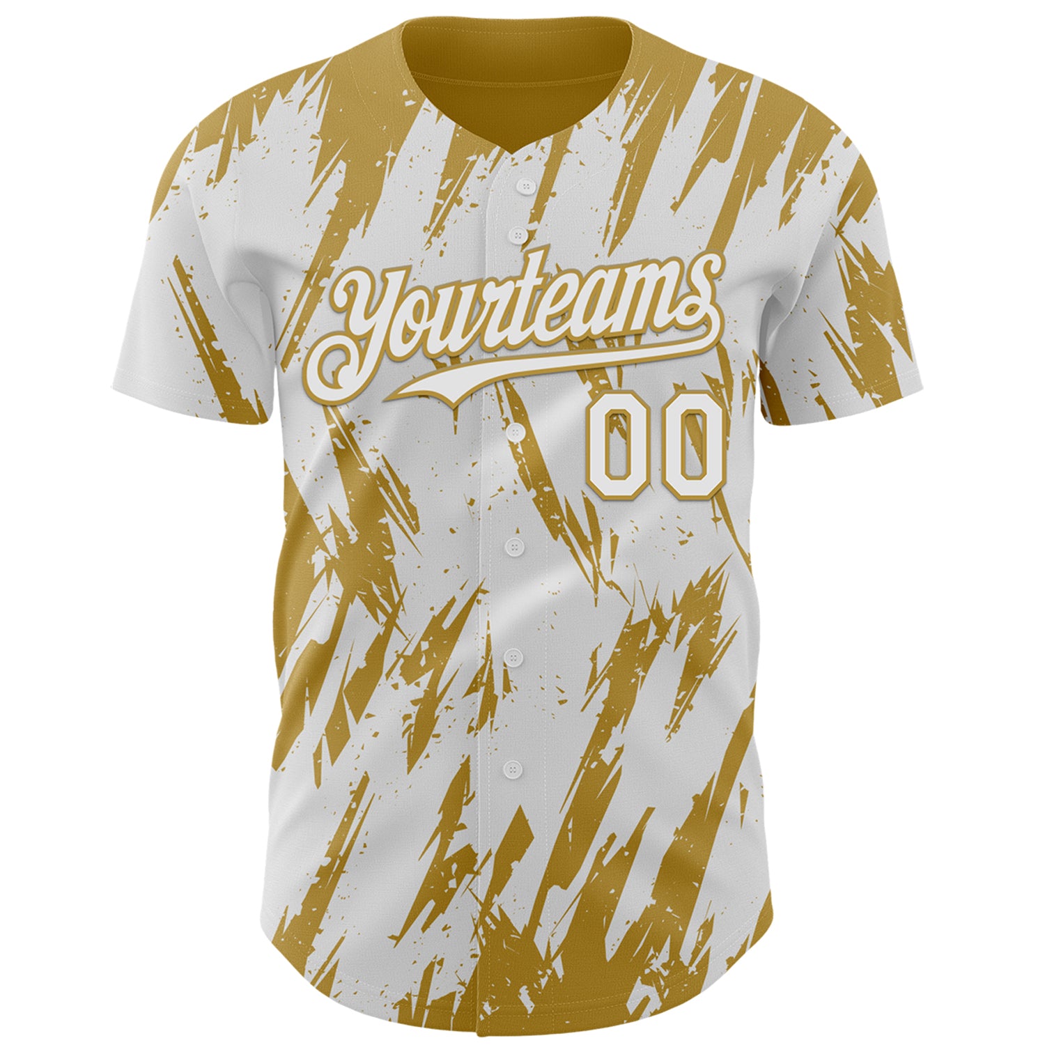 Custom White Old Gold 3D Pattern Design Splatter Torn Sharp Brush Stroke Authentic Baseball Jersey