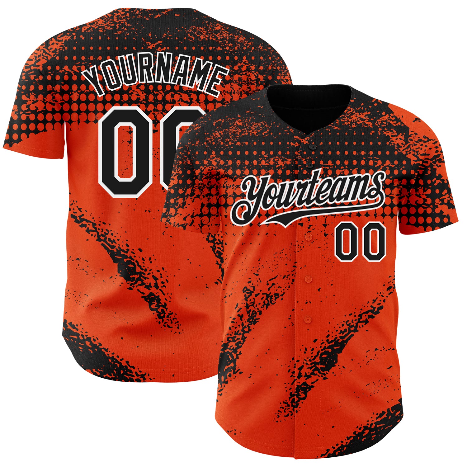 Custom Black Orange-White 3D Pattern Design Splash Grunge Fragment Authentic Baseball Jersey