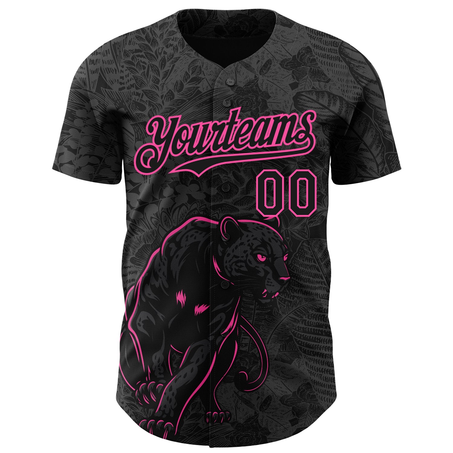 Custom Black Pink 3D Hawaii Tropical Palm Leaves And Animal Leopard Authentic Baseball Jersey