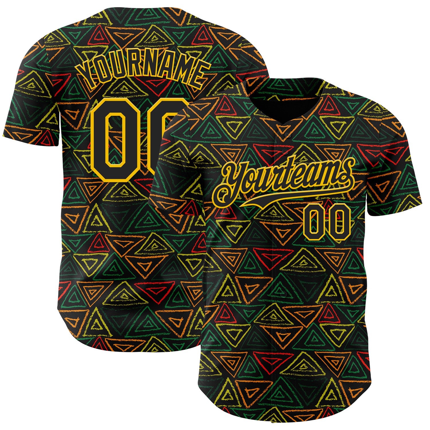Custom Black Red Green-Yellow 3D Pattern Design Black History Month African Ethnicity Style Abstract Geometric Authentic Baseball Jersey
