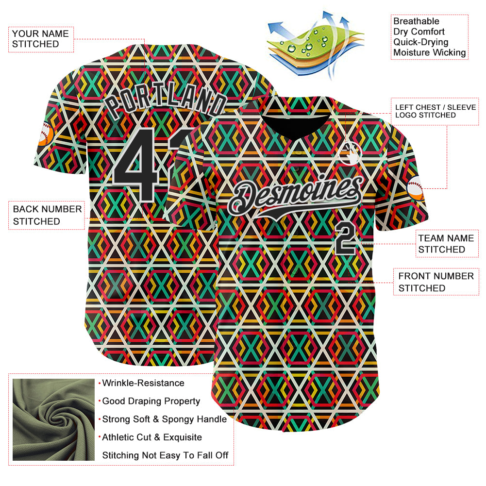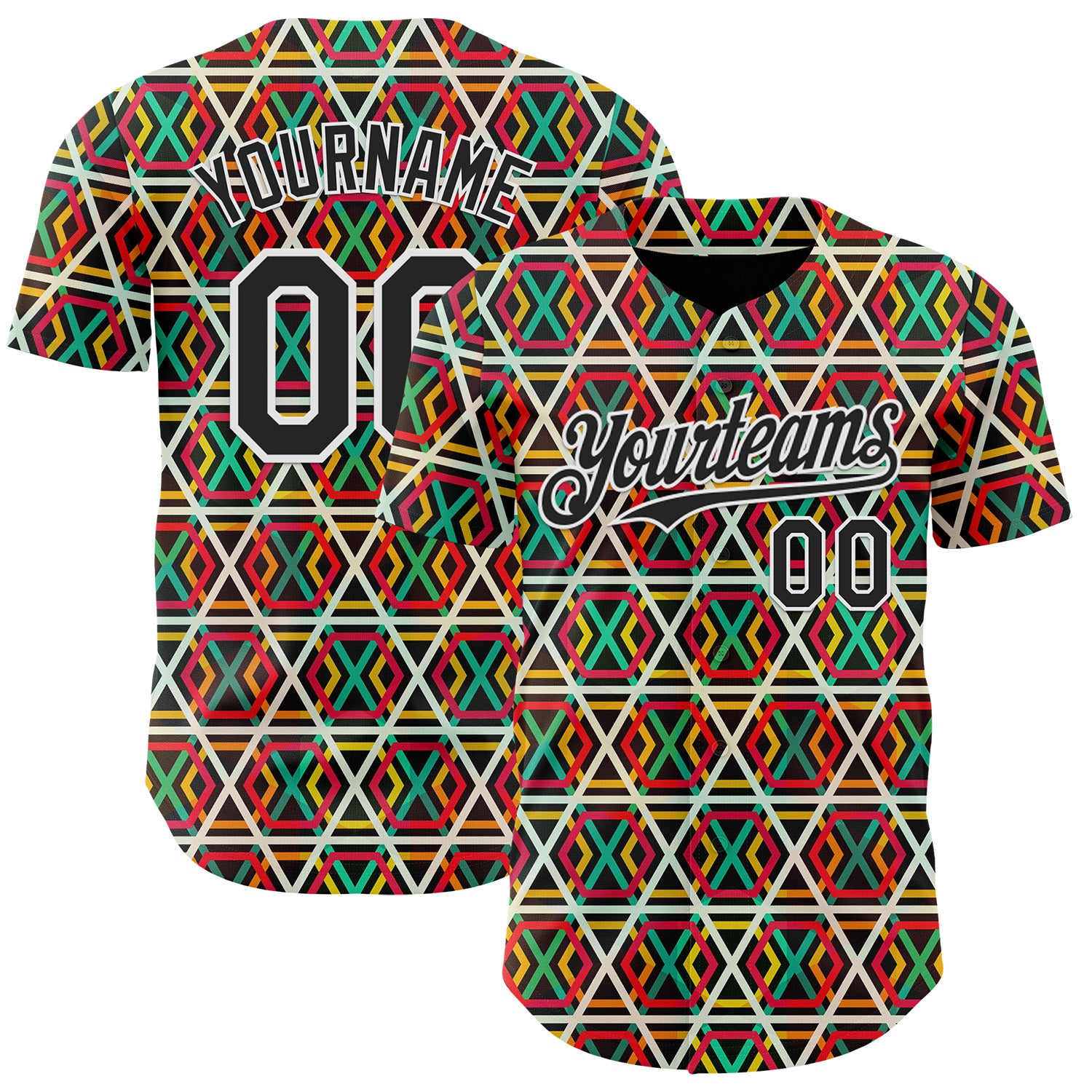 Custom Black Red Green Yellow-White 3D Pattern Design Black History Month African Ethnicity Style Abstract Geometric Authentic Baseball Jersey