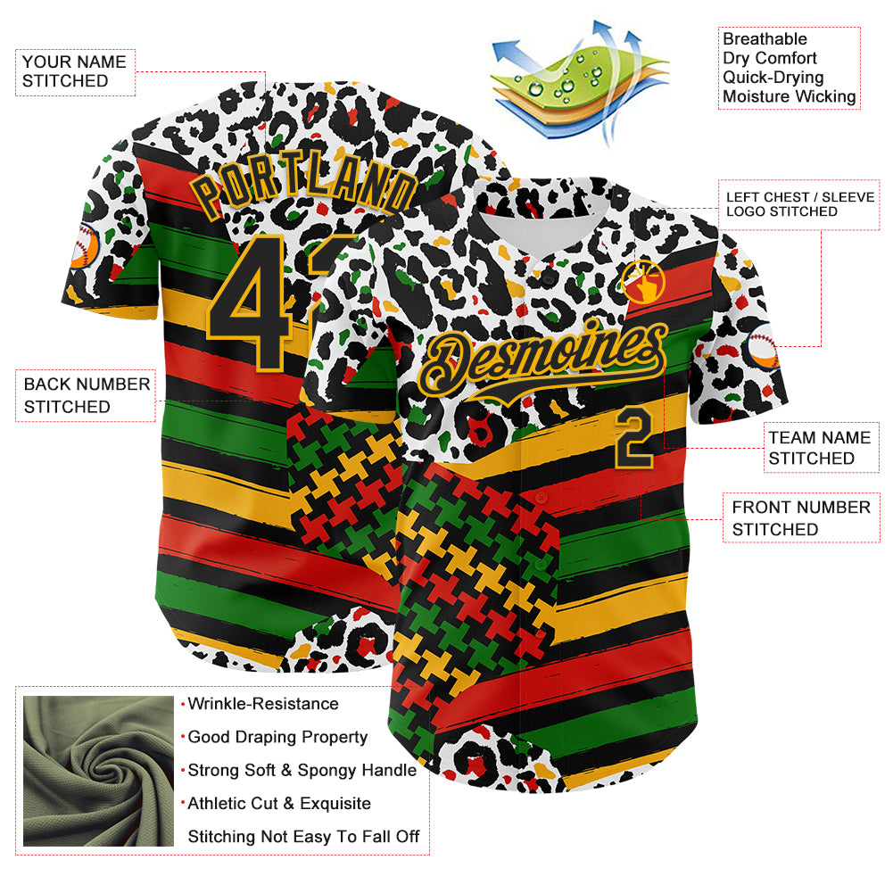 Custom White Black Red Green-Gold 3D Pattern Design Black History Month Abstract Geometric Animal Print Authentic Baseball Jersey
