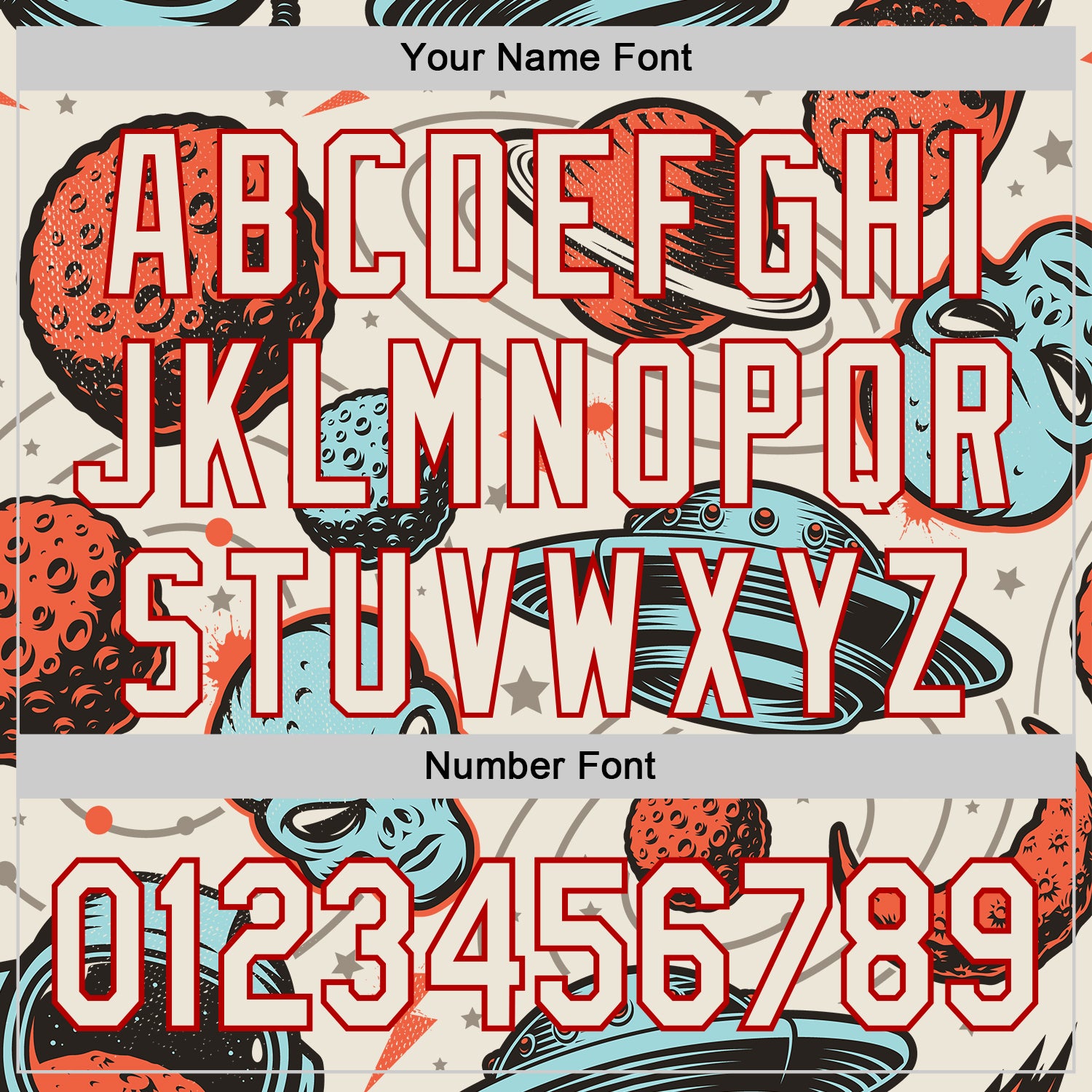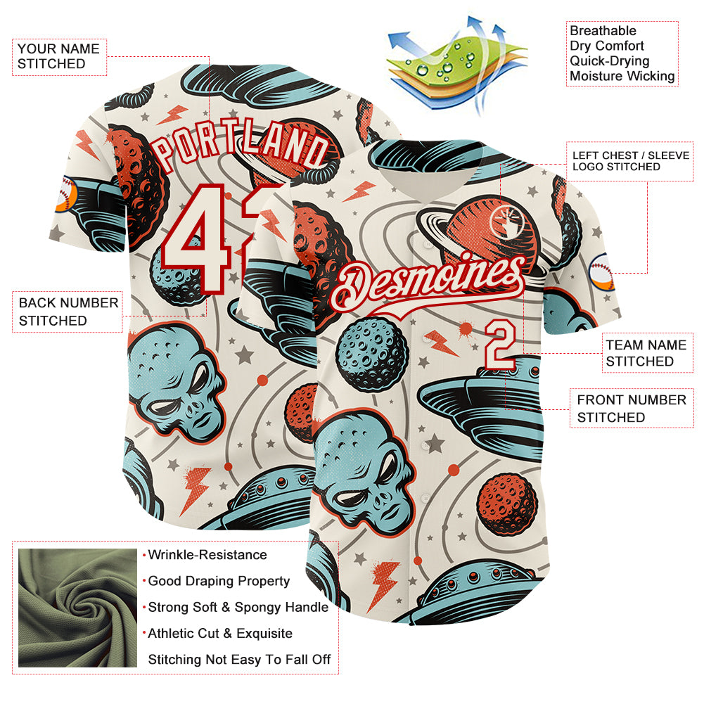 Custom Cream Red 3D Pattern Design Alien UFO Space Authentic Baseball Jersey