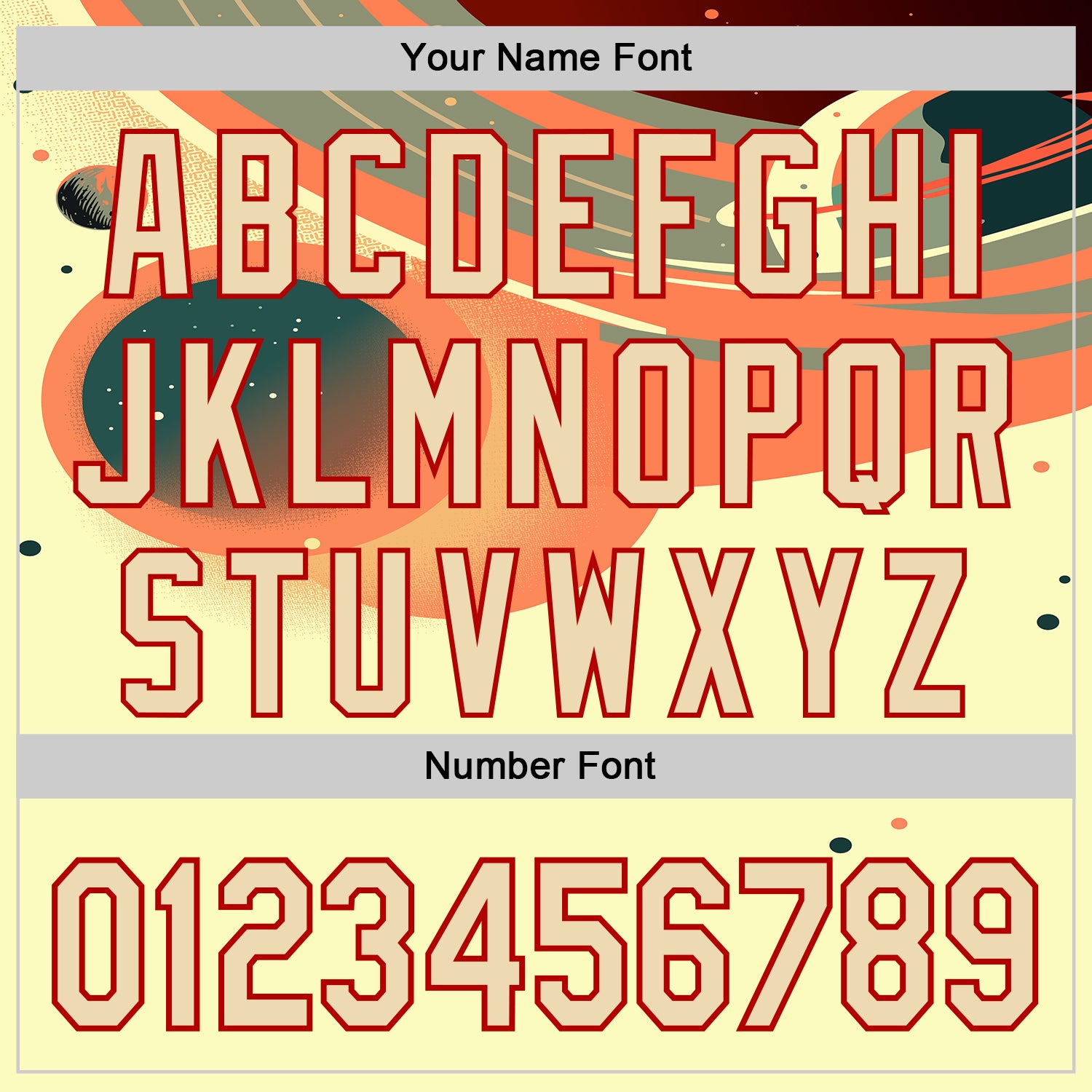 Custom Orange Cream-Red 3D Pattern Design Alien Spaceship Fleet UFO Galaxy Authentic Baseball Jersey