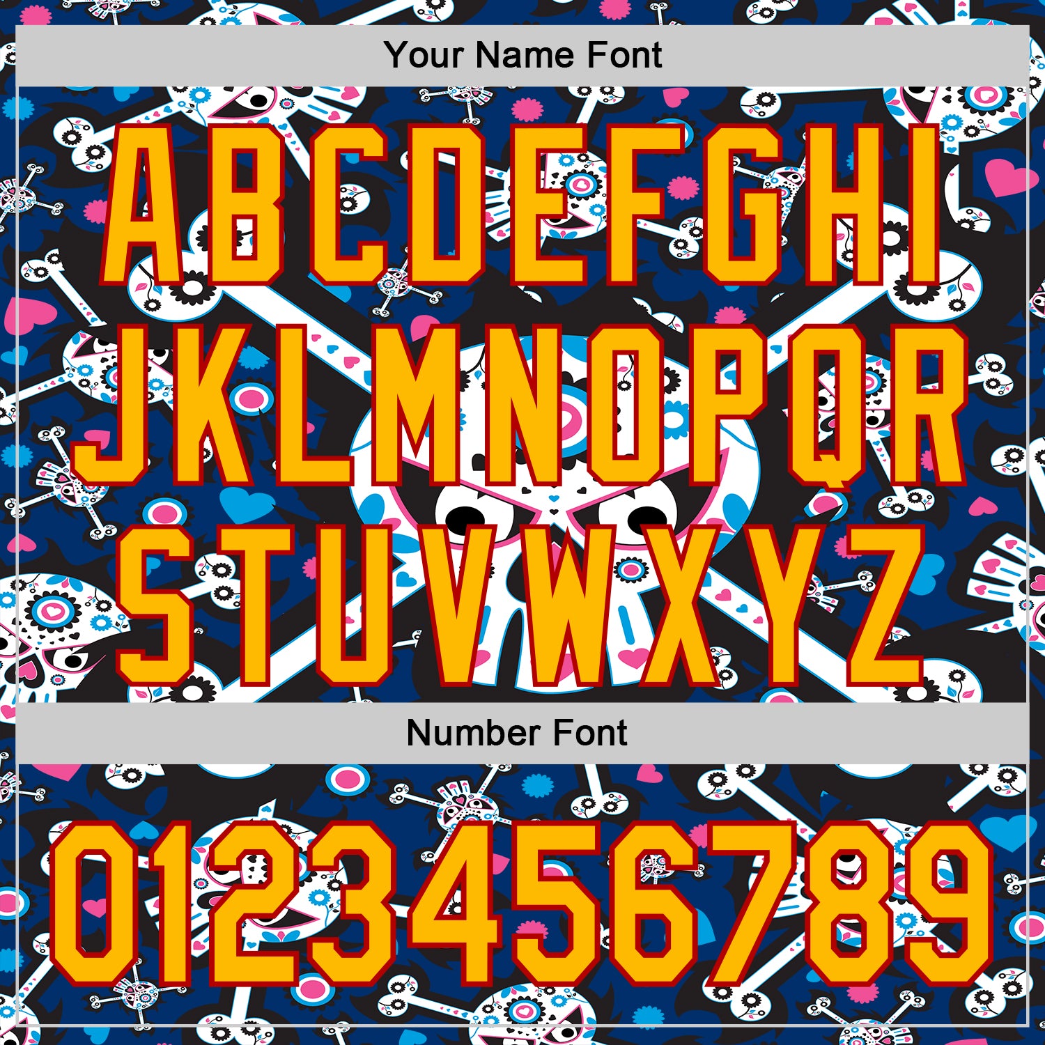 • Load image into Gallery viewer, Custom Royal Gold-Red Sugar Skull Day of the Dead Mexican Folk Art Authentic Baseball Jersey