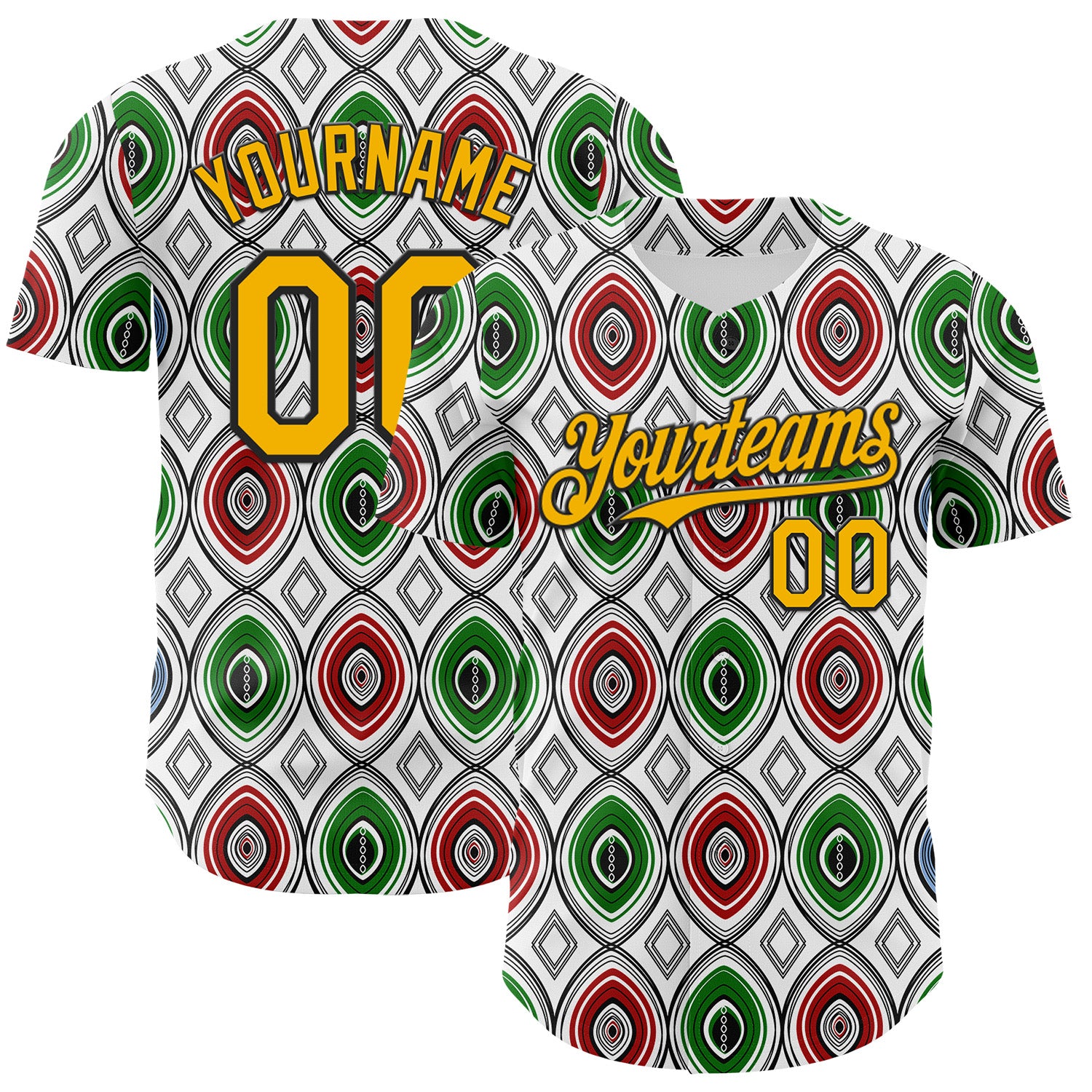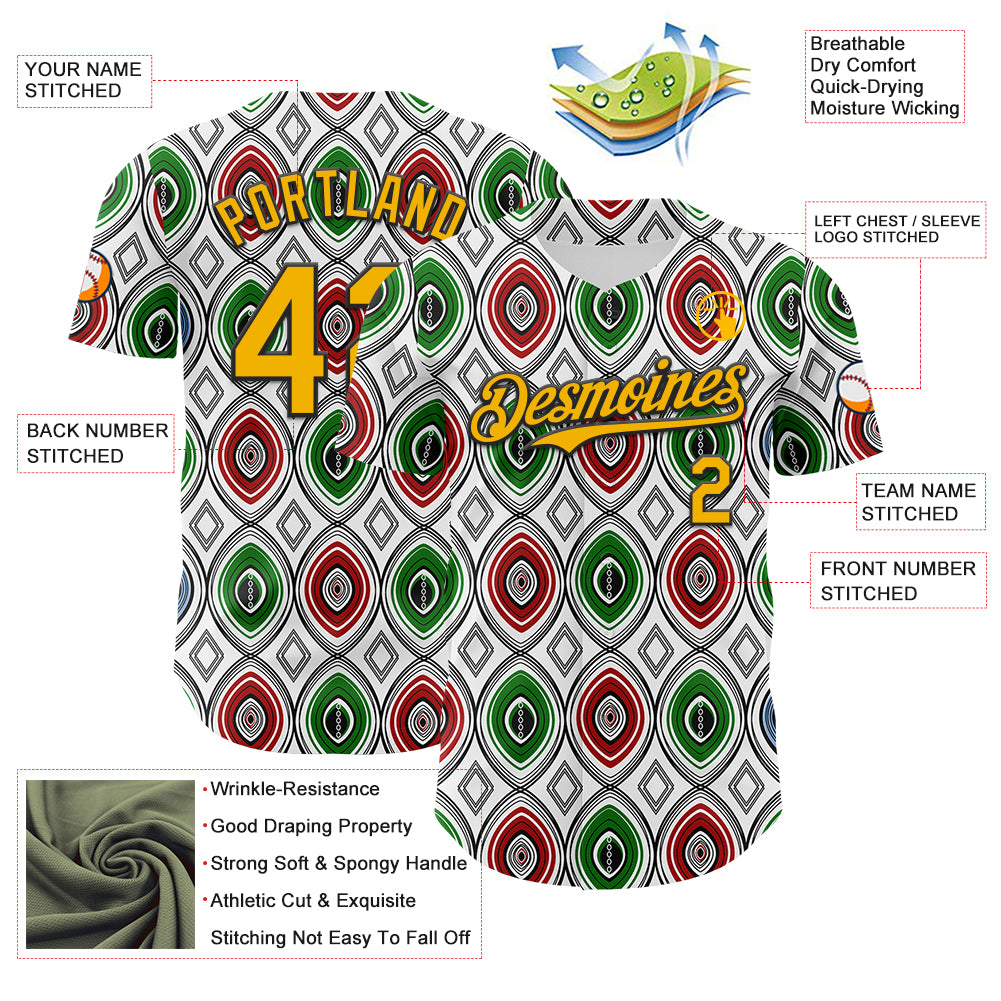 Custom White Gold Red Green-Black 3D Pattern Design Black History Month African Ethnicity Style Authentic Baseball Jersey