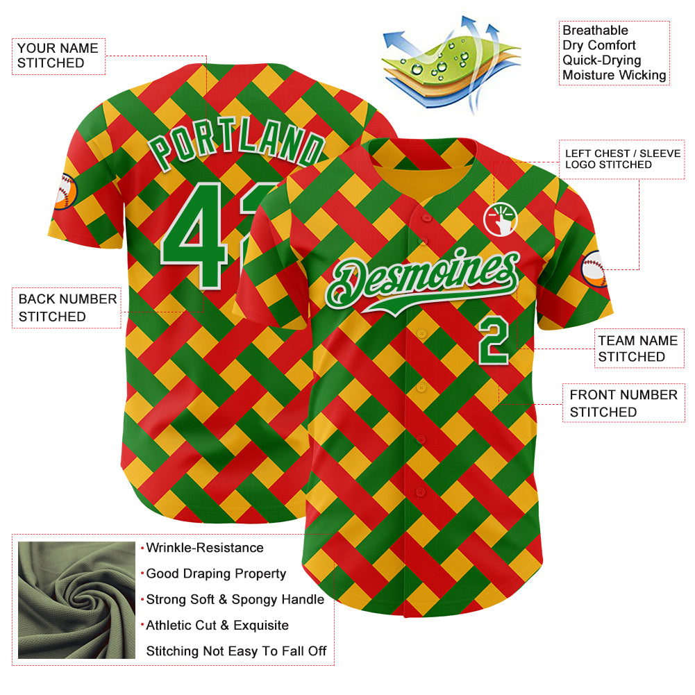 Custom Gold Grass Green Red-White 3D Pattern Design Black History Month African Ethnicity Style Abstract Geometric Authentic Baseball Jersey