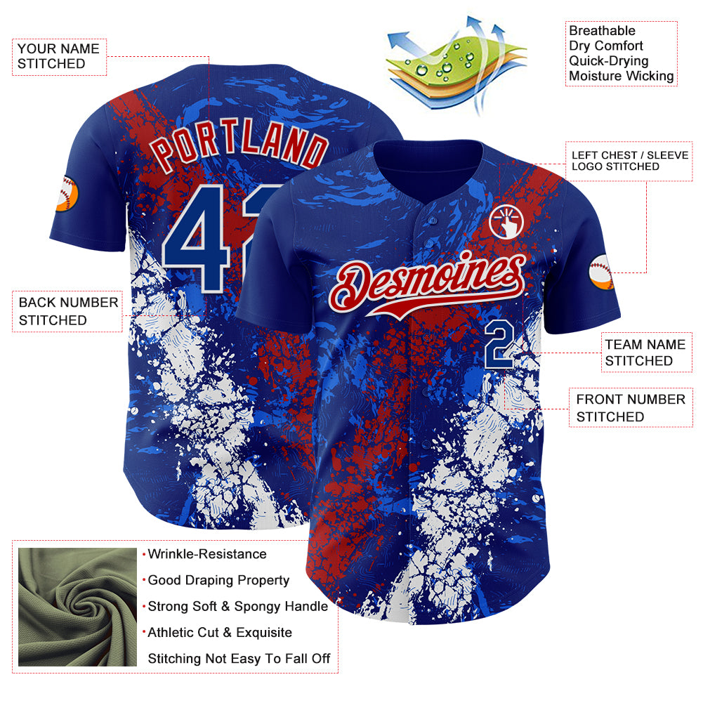 Custom Royal Red-White 3D Pattern Design Splash Authentic Baseball Jersey