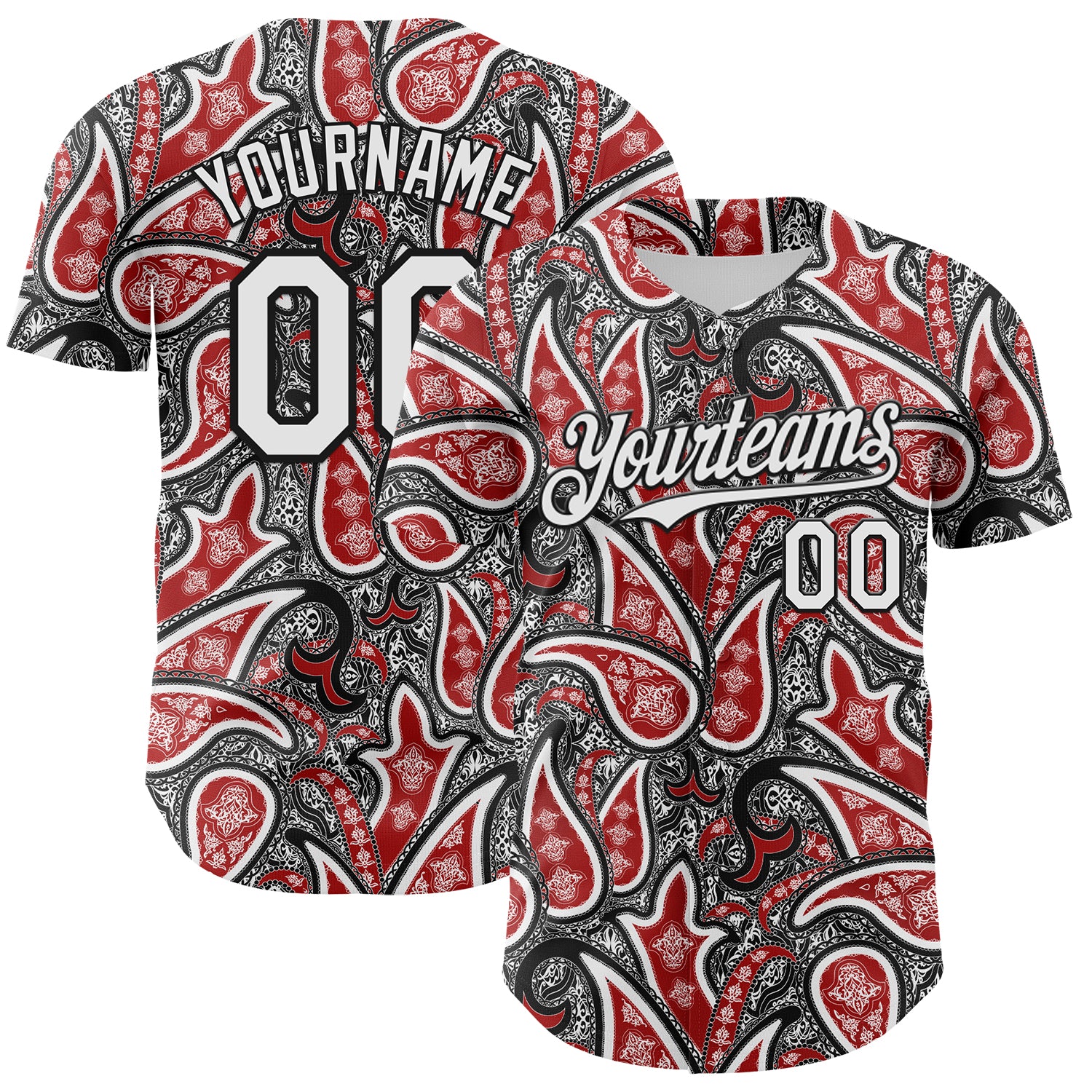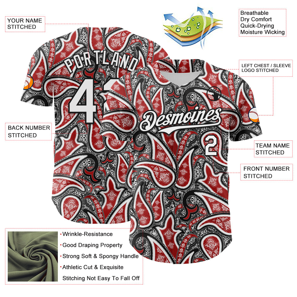 Custom Black White-Red 3D Pattern Design Rave Party Ethnic Paisley Bandana Authentic Baseball Jersey