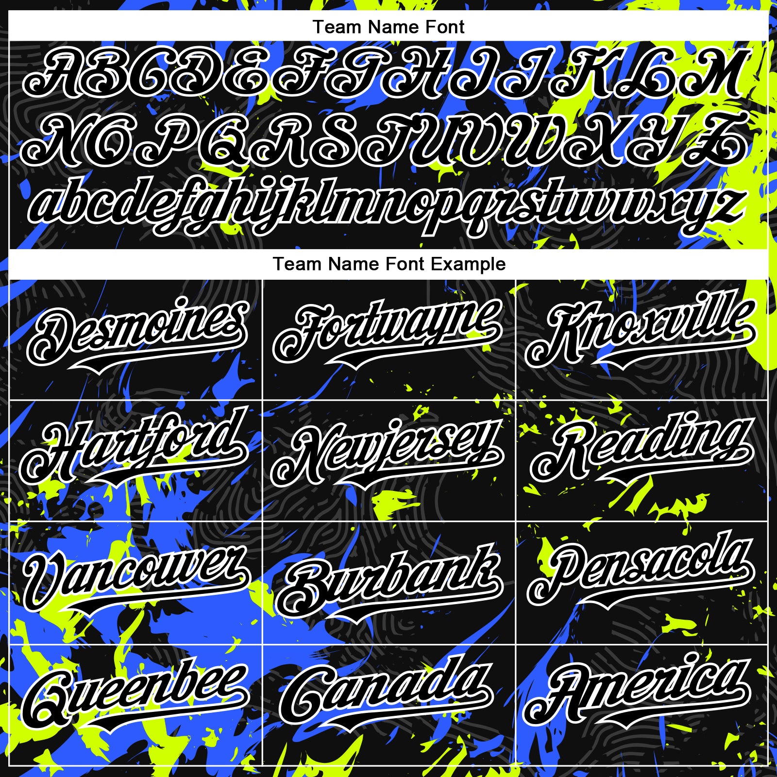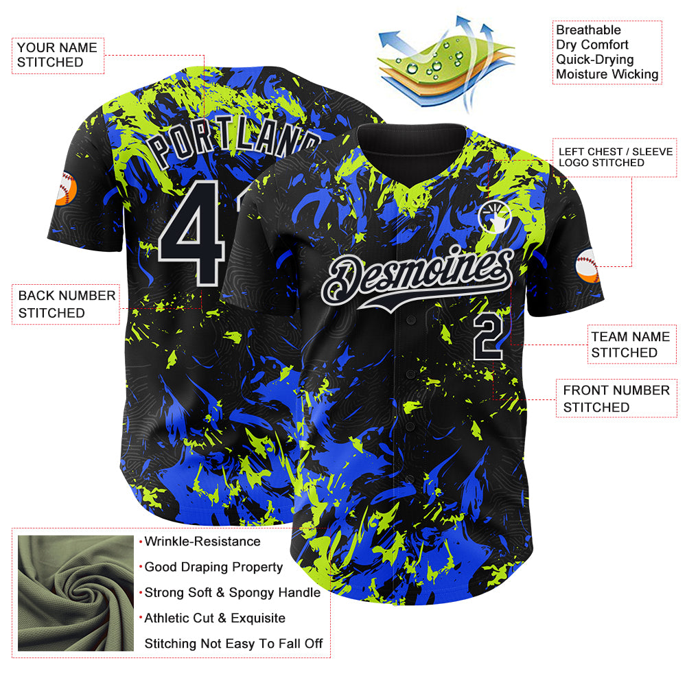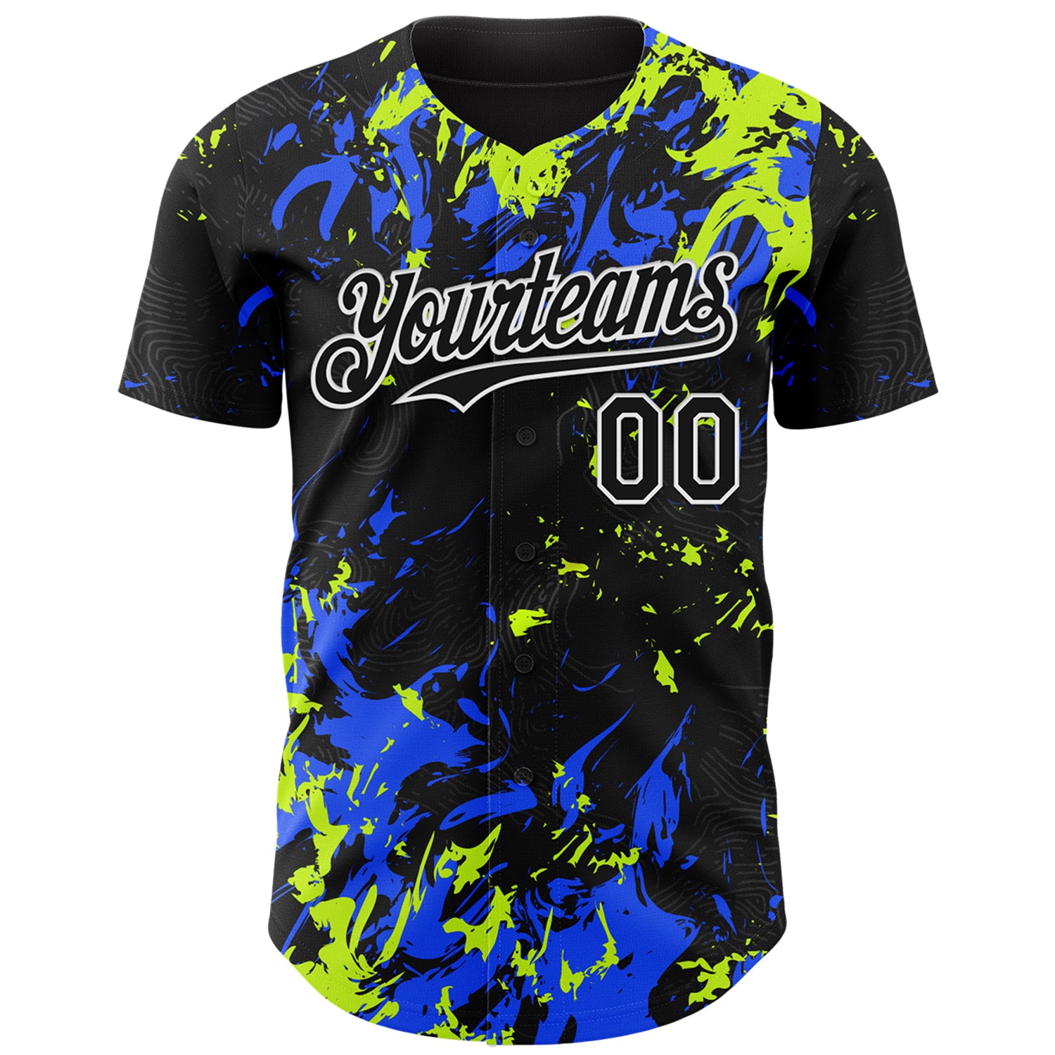 Custom Black Royal Neon Green-White 3D Pattern Design Splash Authentic Baseball Jersey