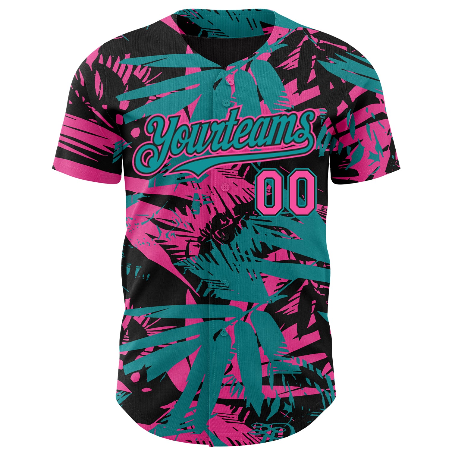 Custom Black Pink-Teal 3D Hawaii Palm Leaves Authentic Baseball Jersey