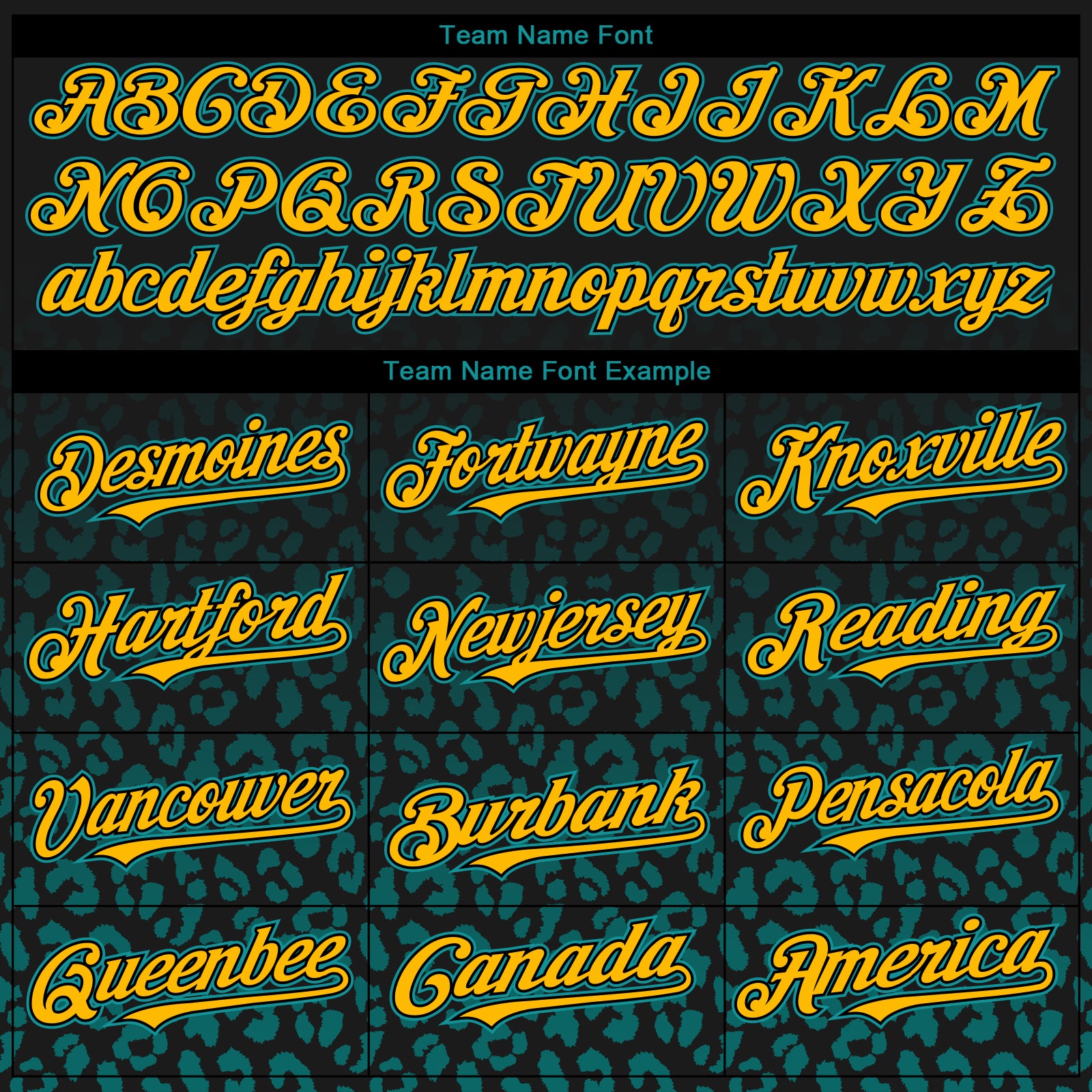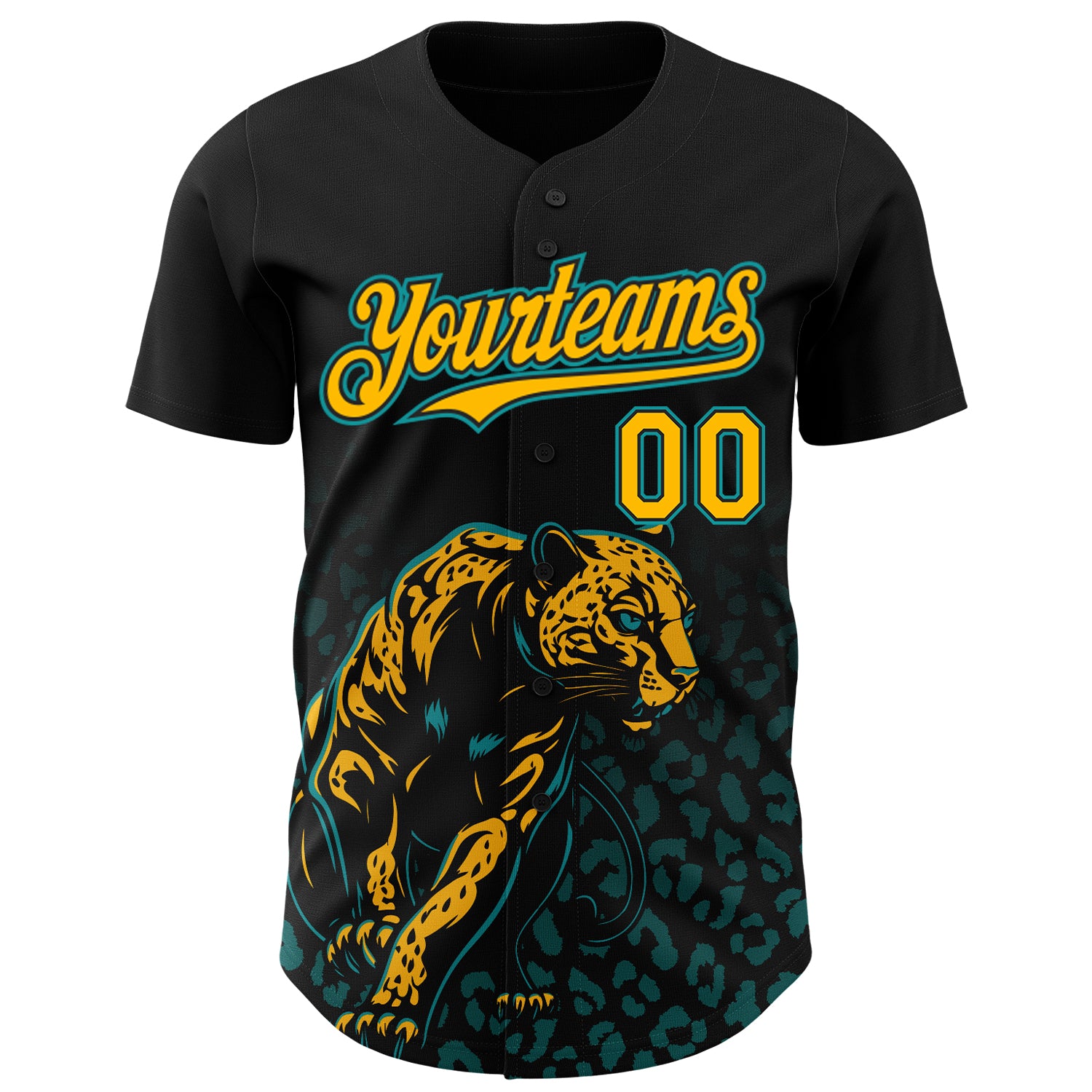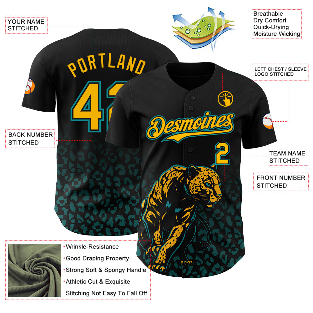 Custom Black Yellow-Teal 3D Pattern Design Gradient Leopard Print Authentic Baseball Jersey