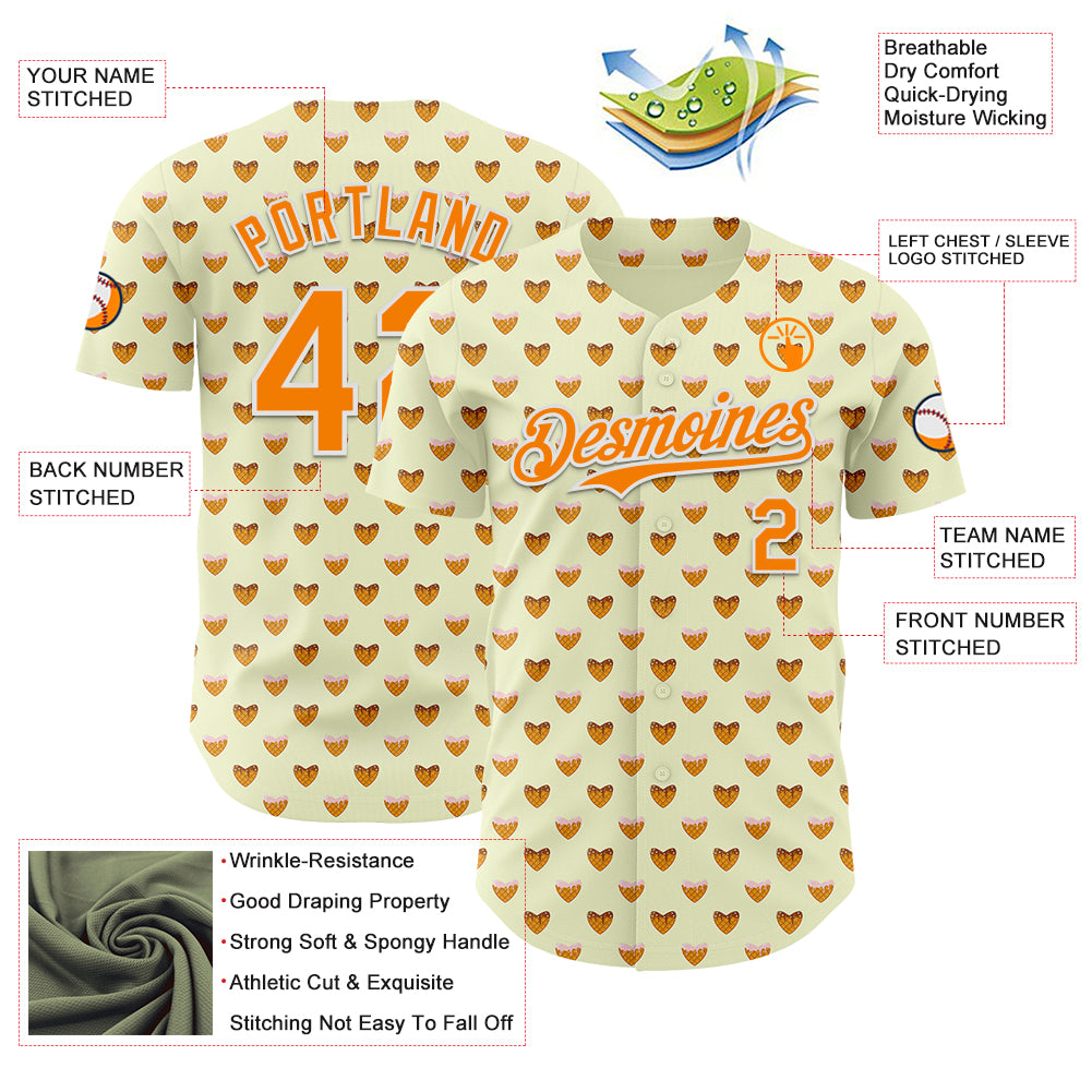 Custom Yellow Bay Orange-White 3D Pattern Design Foodie Heartshaped Waffles Sweets Authentic Baseball Jersey