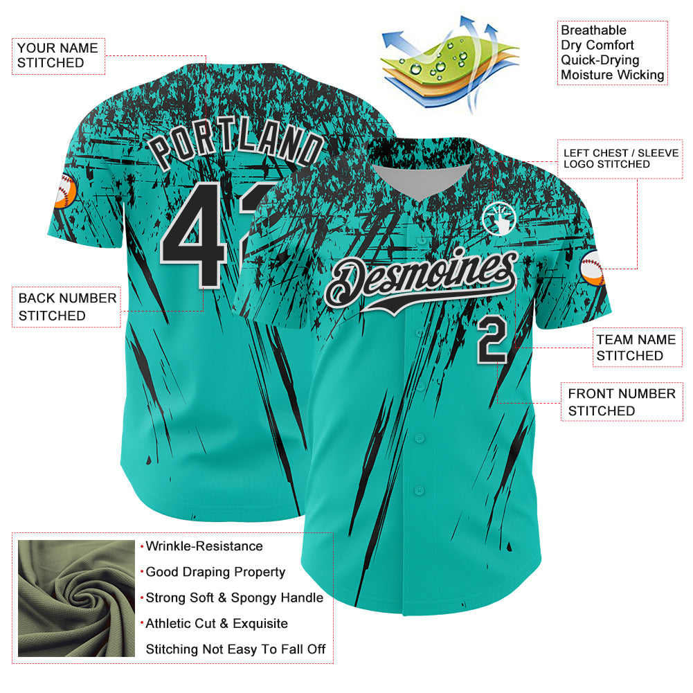 Custom Aqua Black-White Distressed Scratch Brush Stroke Authentic Baseball Jersey