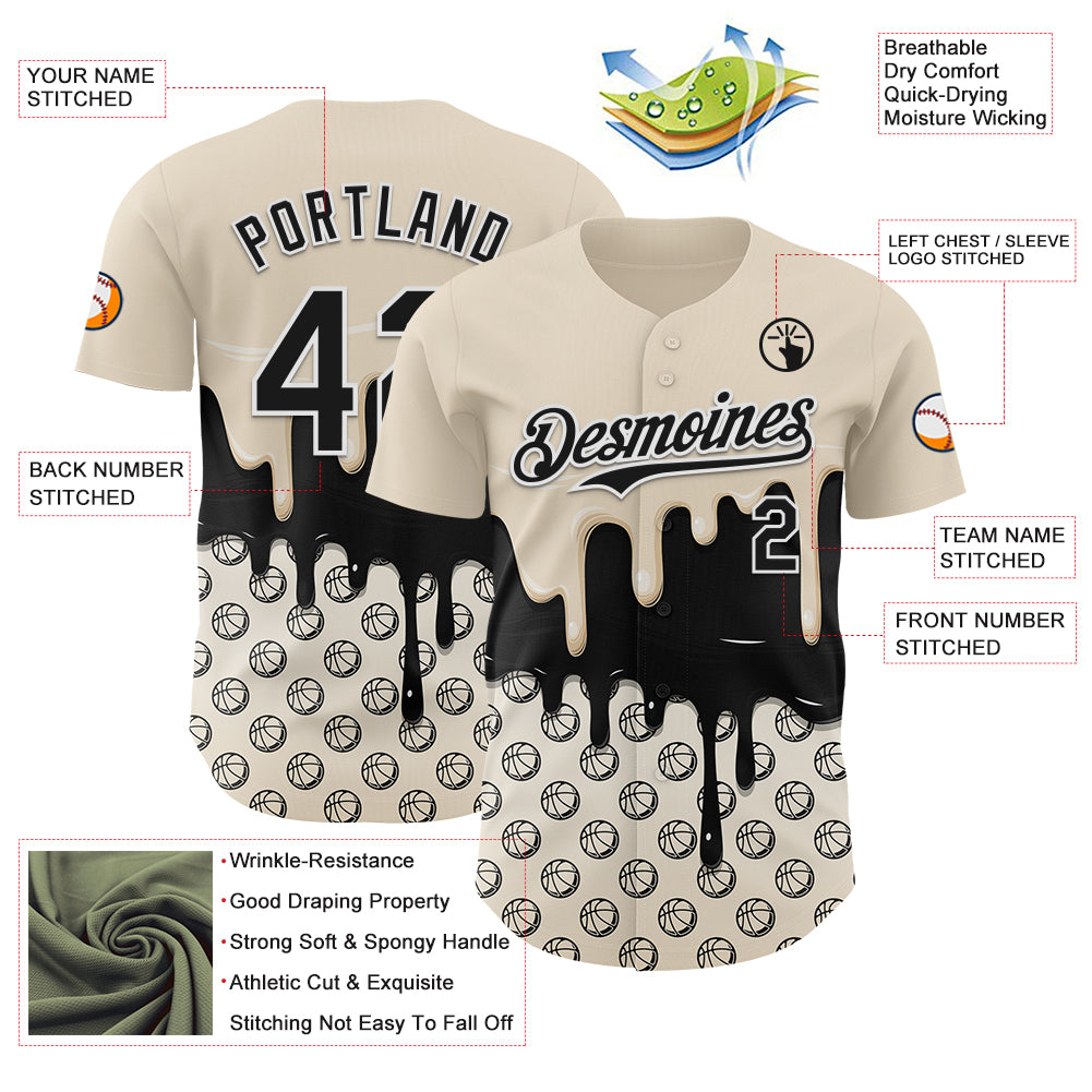 Custom Cream Black-White 3D Pattern Design Foodie Dripping Ice Cream Authentic Baseball Jersey