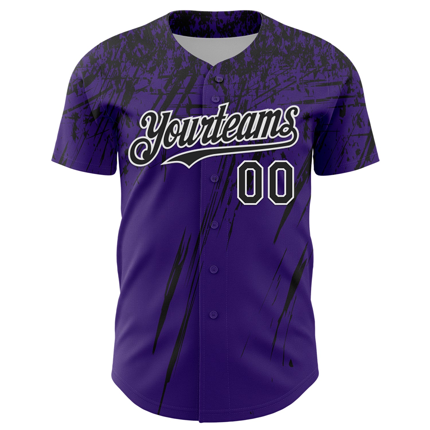 Custom Purple Black-White Distressed Scratch Brush Stroke Authentic Baseball Jersey