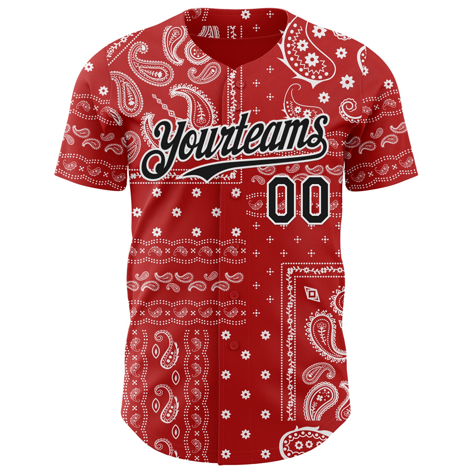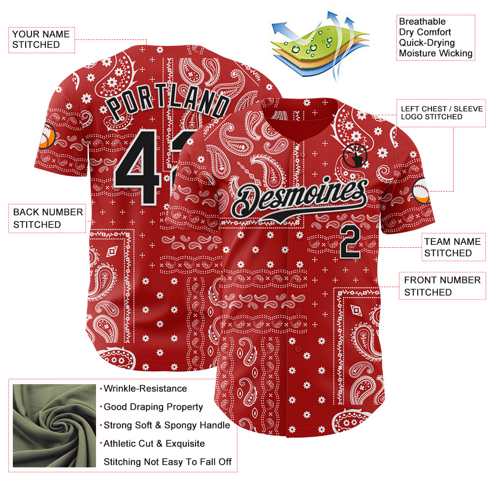 Custom Red Black-White 3D Pattern Design Rave Party Ethnic Paisley Bandana Authentic Baseball Jersey