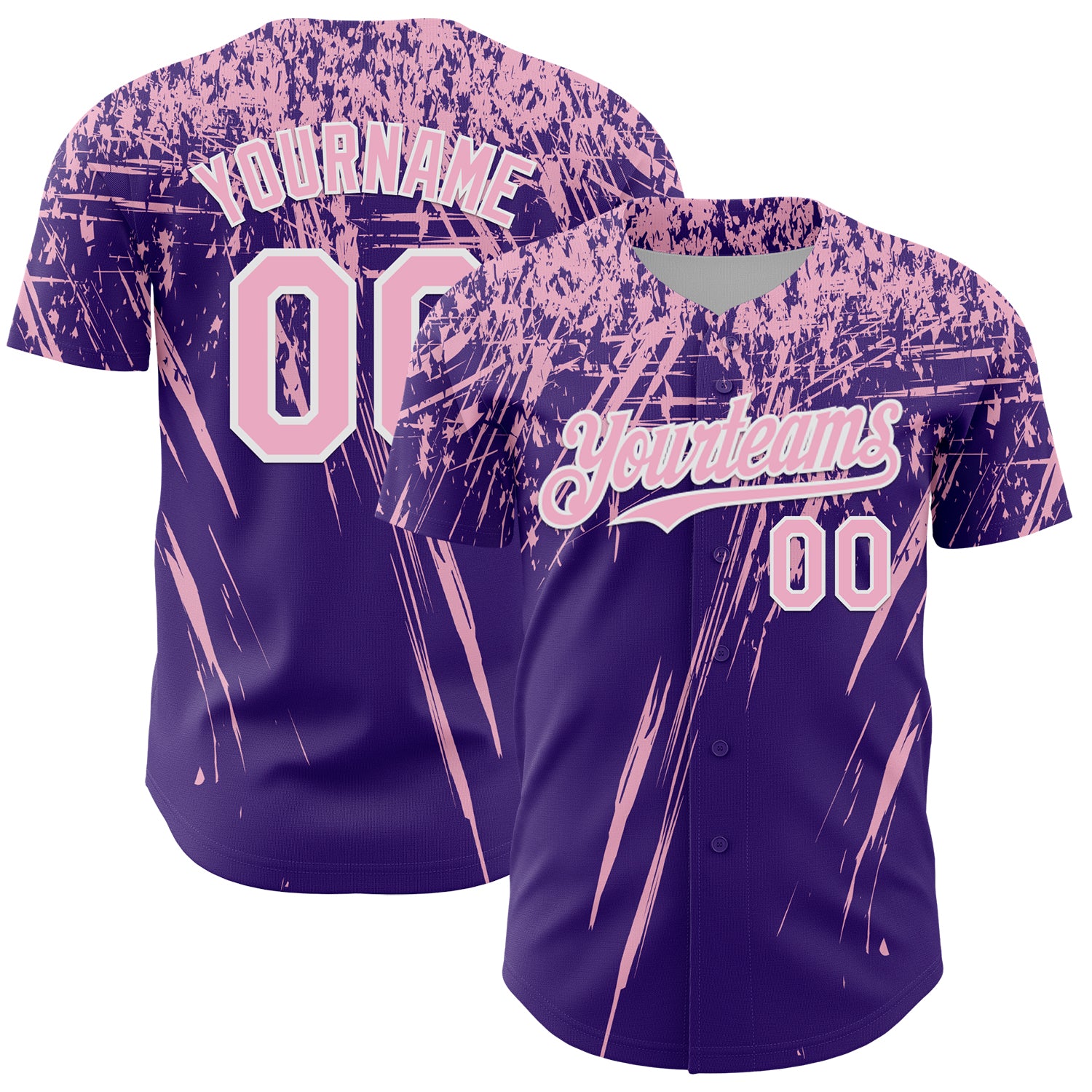Custom Purple Light Pink-White Distressed Scratch Brush Stroke Authentic Baseball Jersey