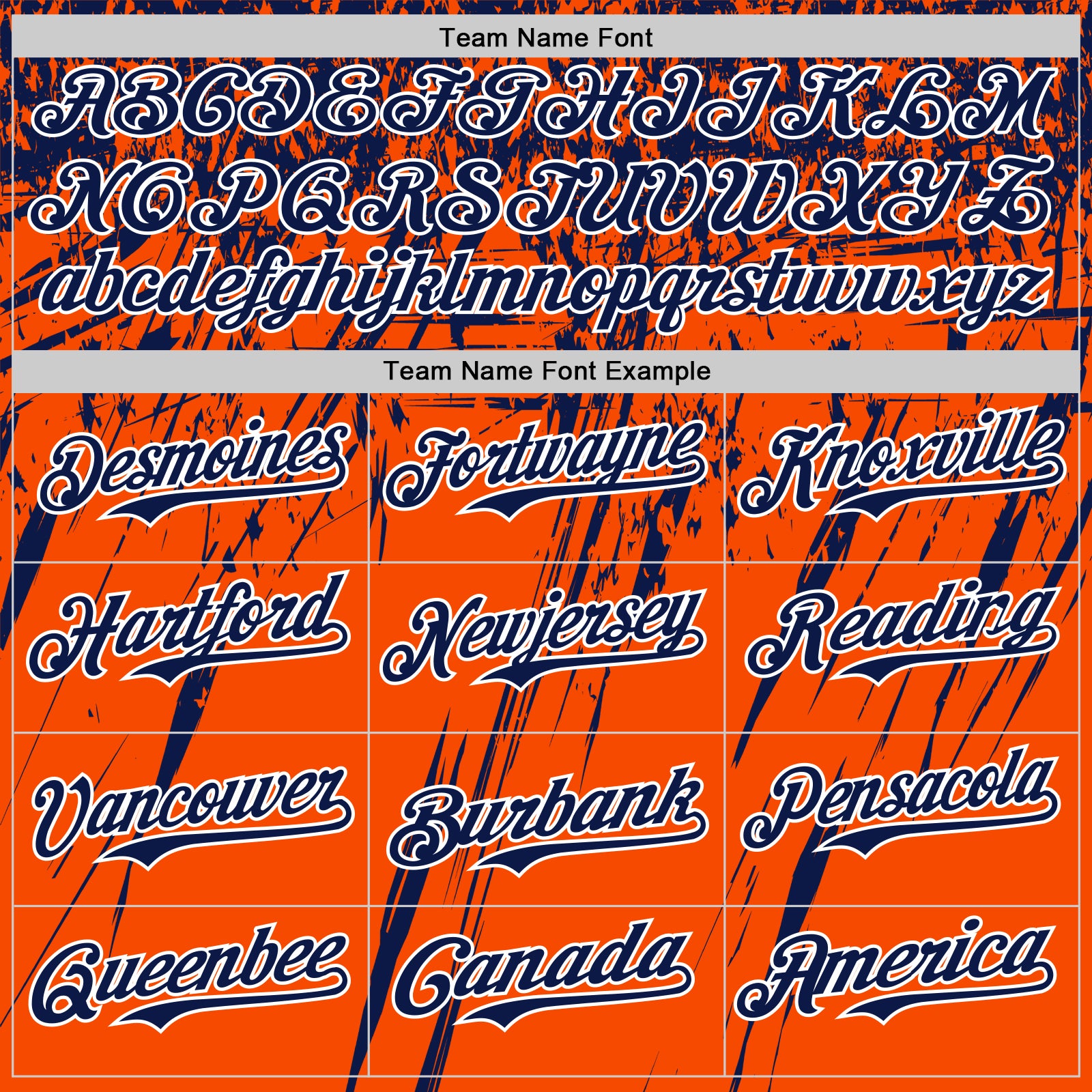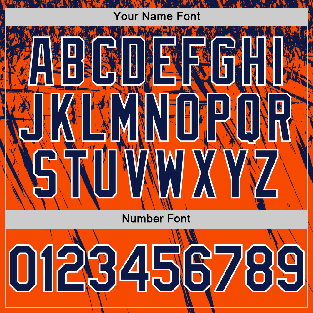 Custom Orange Navy-White Distressed Scratch Brush Stroke Authentic Baseball Jersey