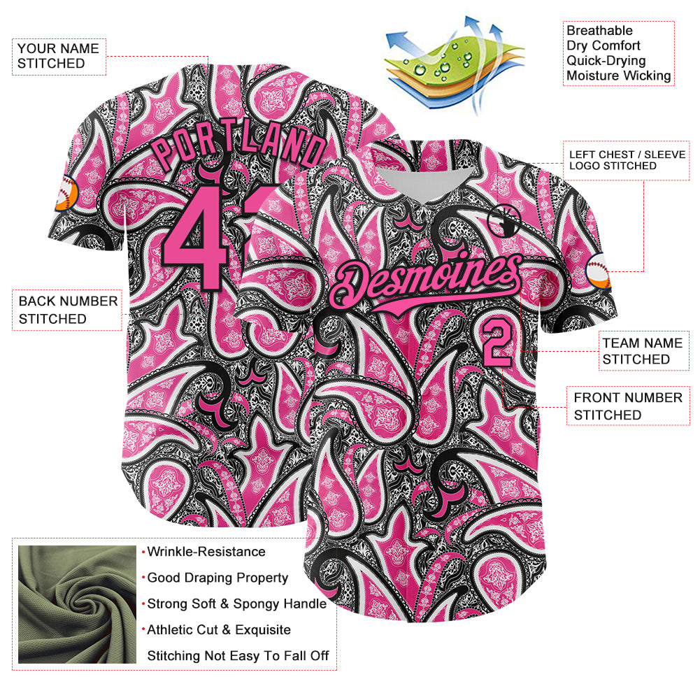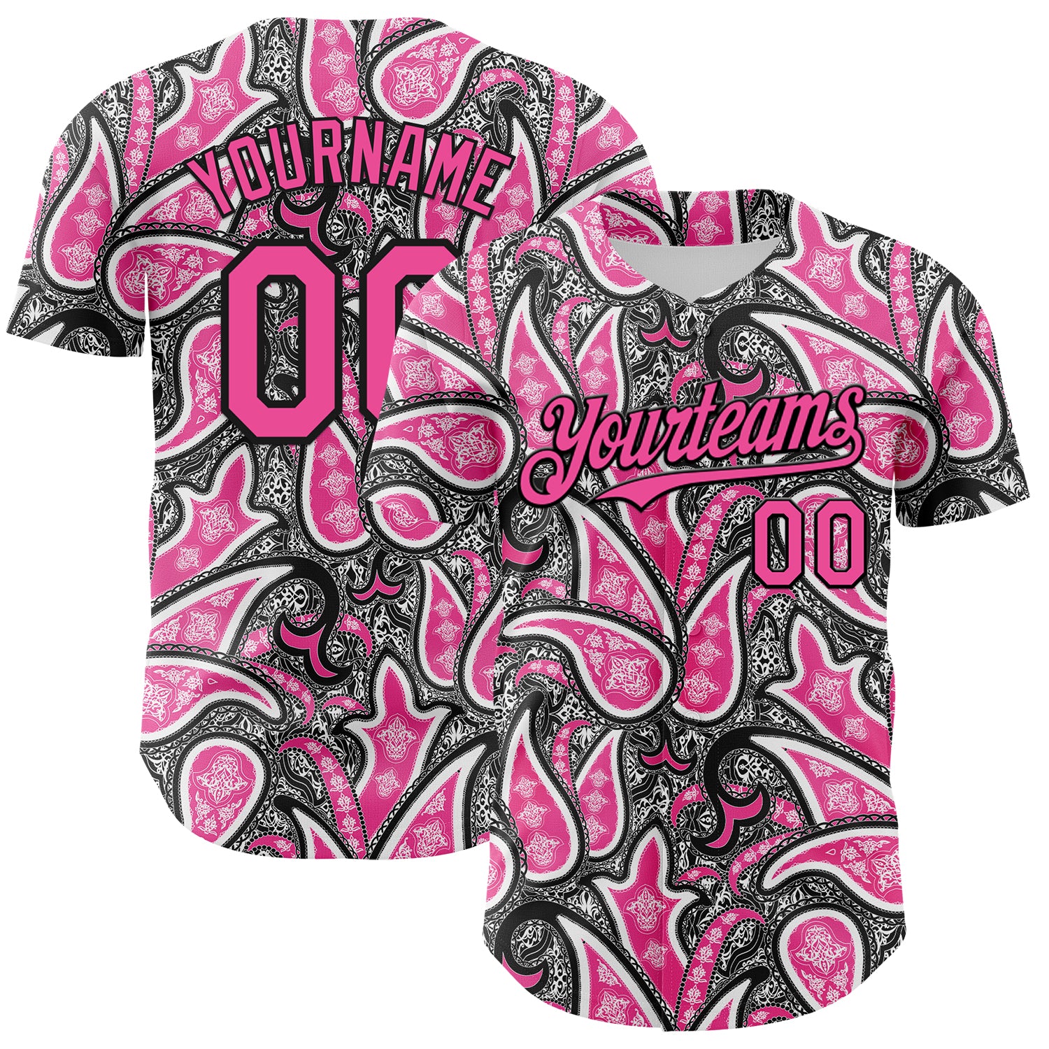 Custom Black Pink-White 3D Pattern Design Rave Party Ethnic Paisley Bandana Authentic Baseball Jersey