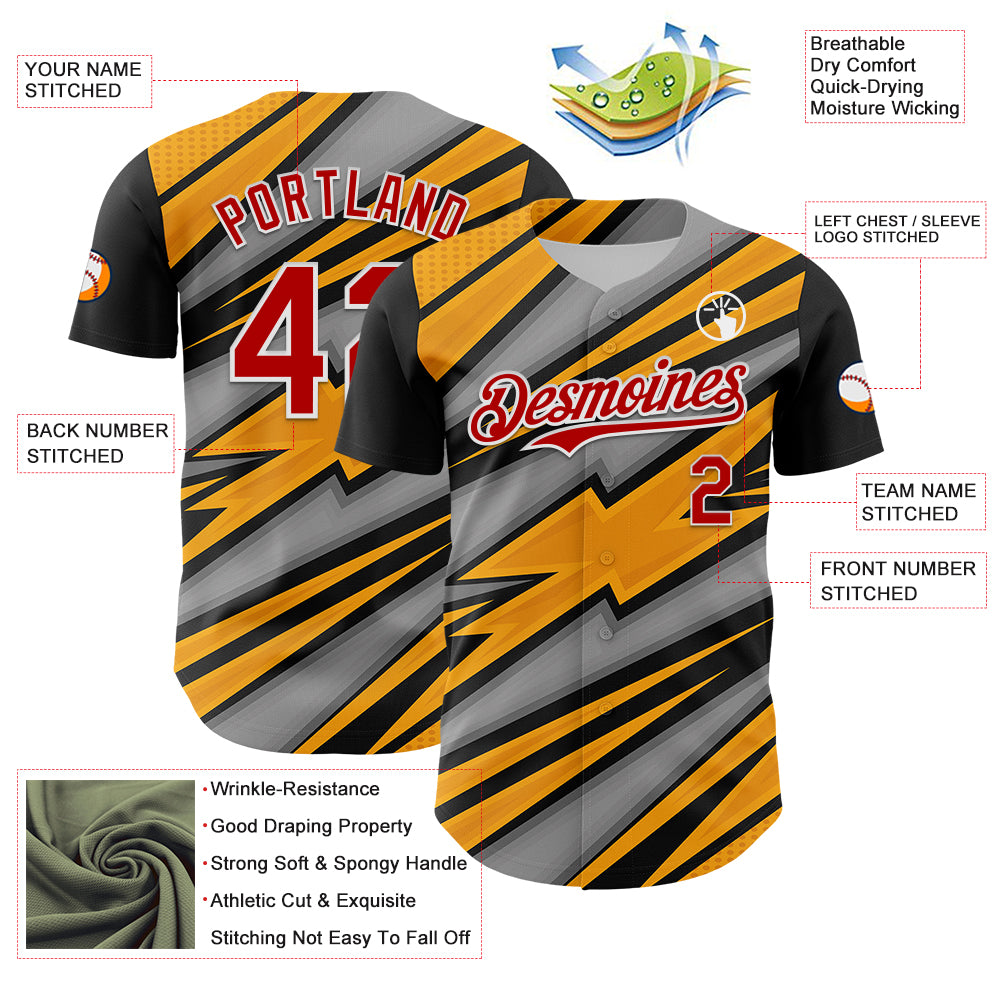 Custom Black Red White Yellow-Gray 3D Pattern Design Car Racing Formula Auto Motorsport Authentic Baseball Jersey
