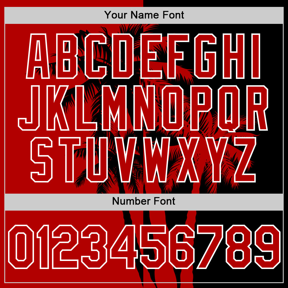 Custom Black Red-White 3D Pattern Design Hawaii Palm Trees Tropical Coconut Authentic Baseball Jersey