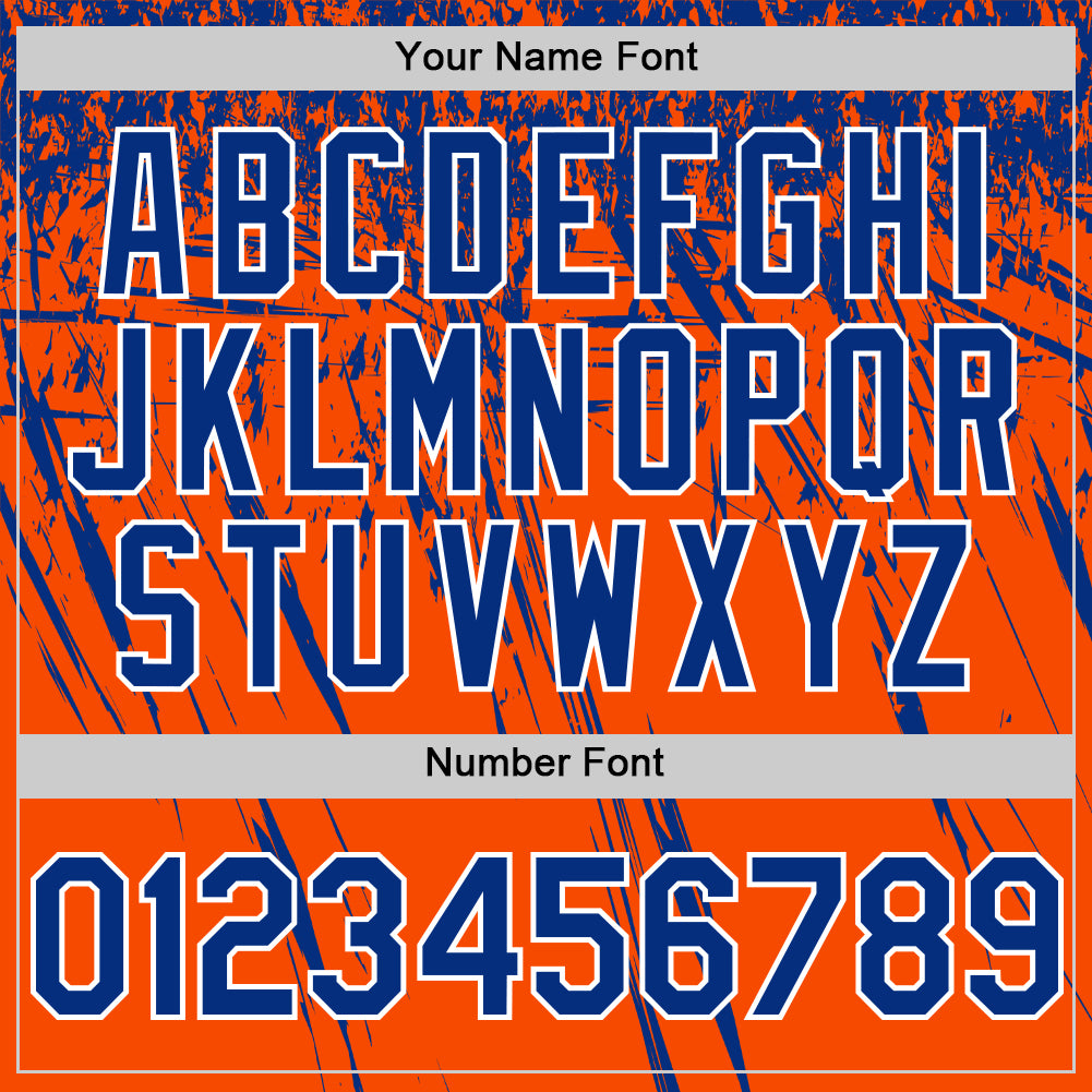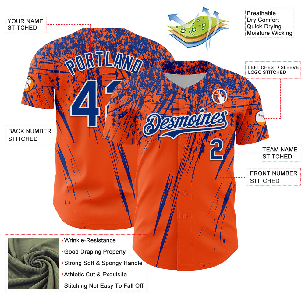 Custom Orange Royal-White Distressed Scratch Brush Stroke Authentic Baseball Jersey