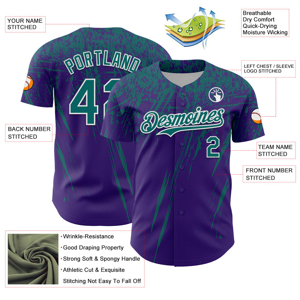 Custom Purple Teal-White Distressed Scratch Brush Stroke Authentic Baseball Jersey